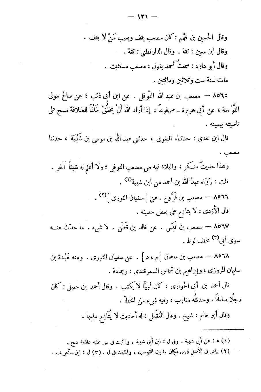 وقال الحسين بن فهم: كان مصعب يقف ويعيب من لا يقف.