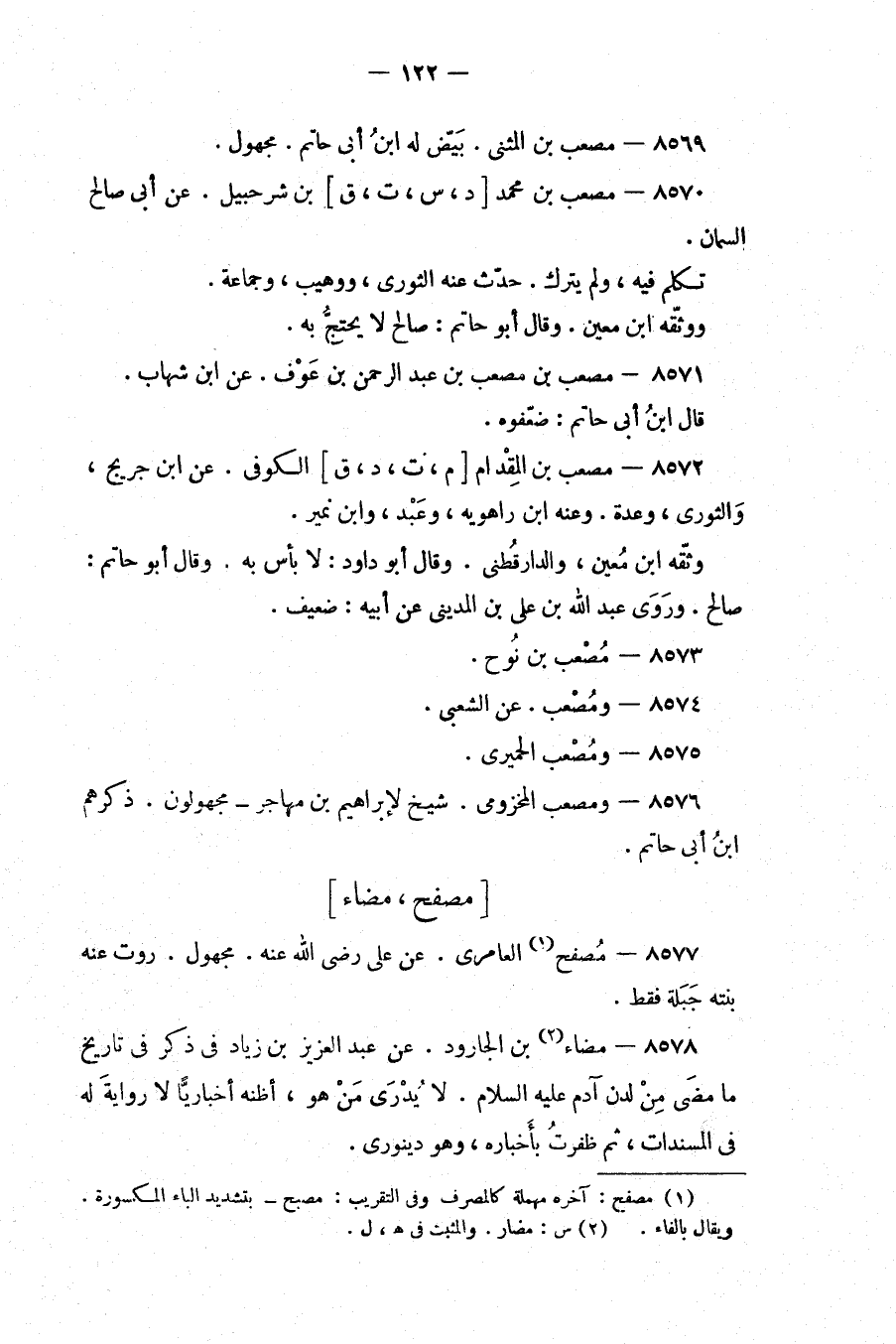 (1) مصفح: آخره مهملة كالمصرف وفي التقريب: مصبح - بتشديد الباء المكسورة.