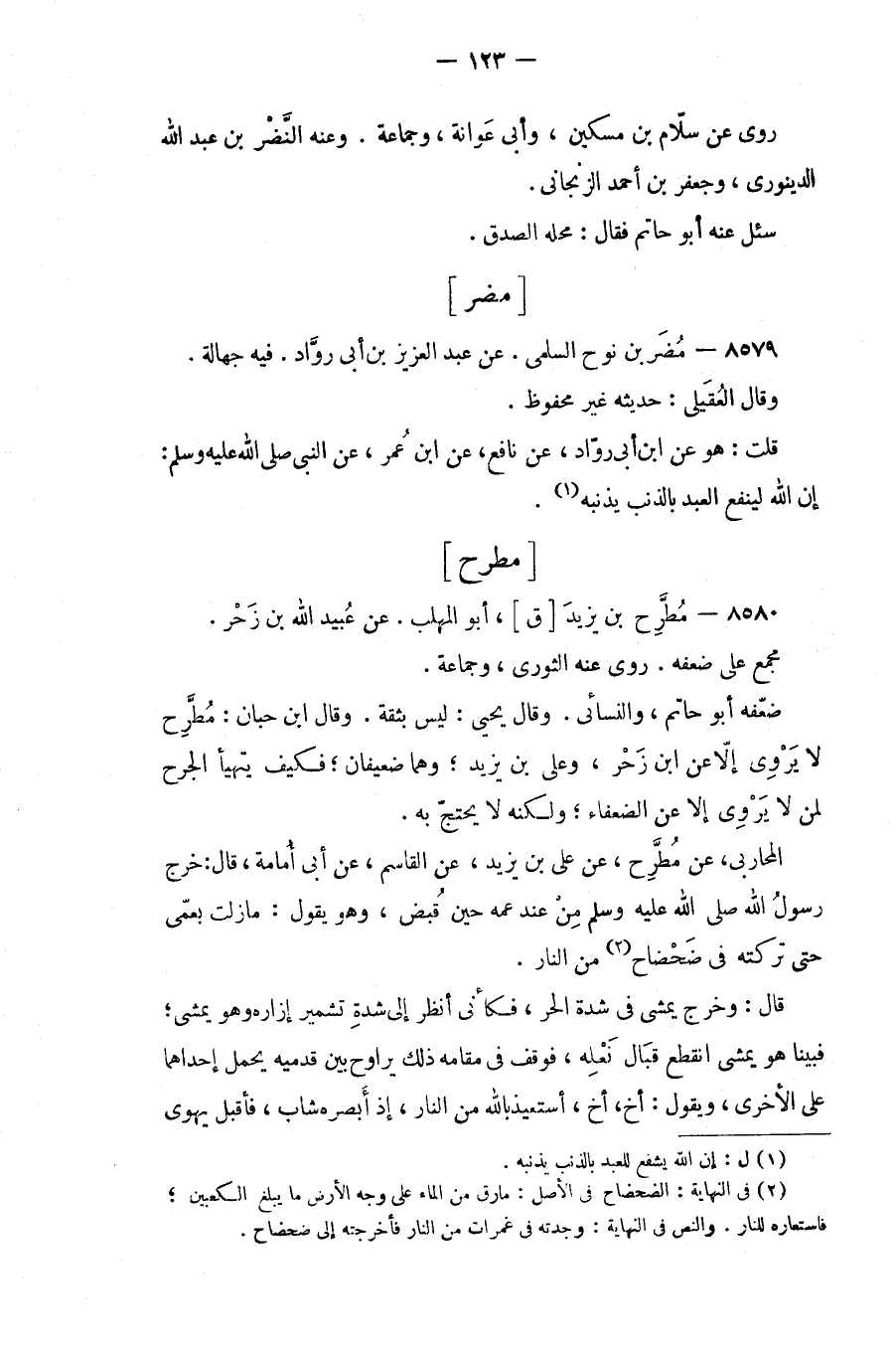 وقال ابن حبان: مطرح لا يروي إلا عن ابن زحر، وعلى بن يزيد، وهما ضعيفاًن، فكيف يتهيأ الجرح لمن لا يروي إلا عن الضعفاء، ولكنه لا يحتج به.