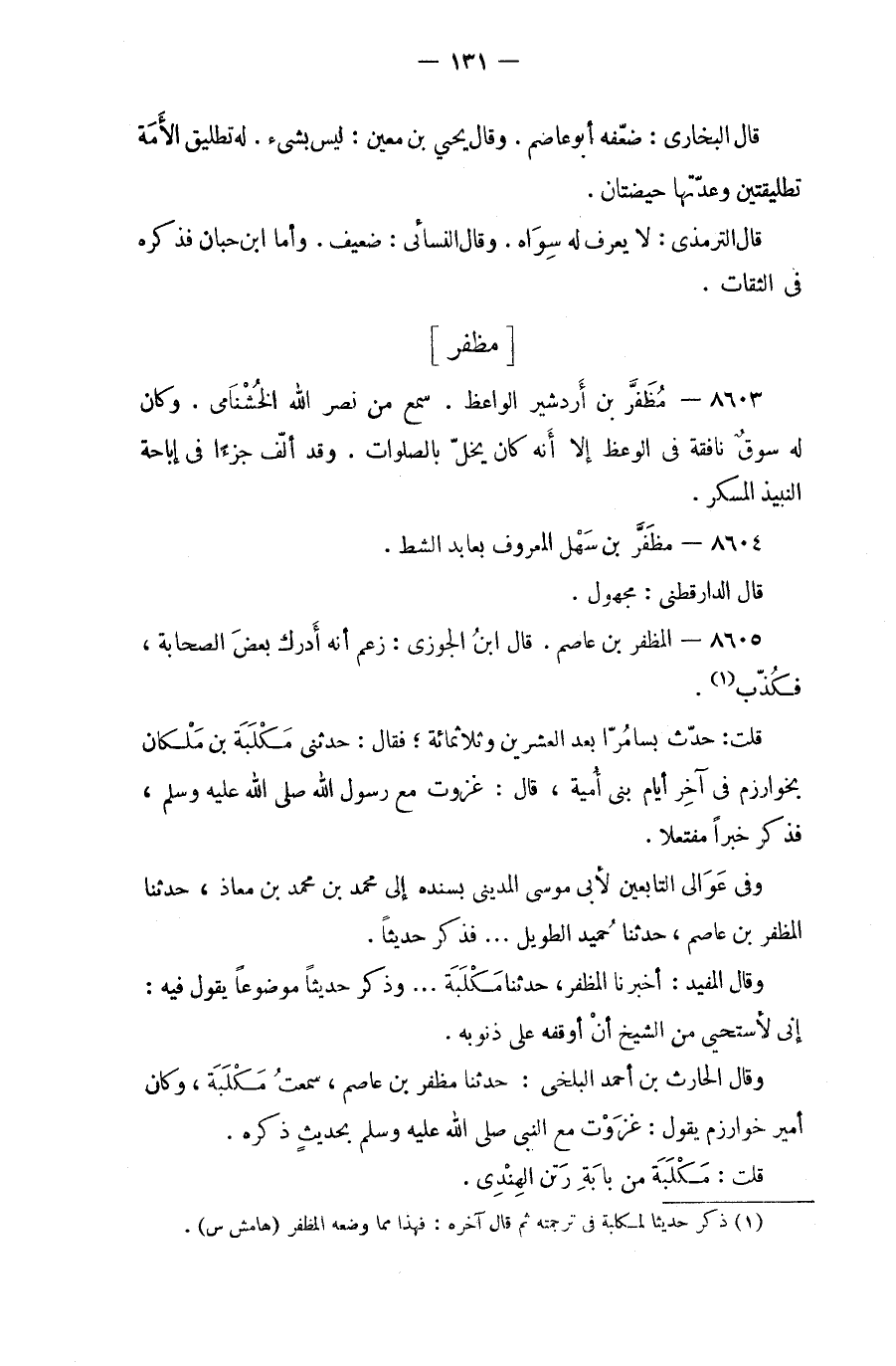 (1) ذكر حديثا لمكلبة في ترجمته ثم قال آخره: فهذا مما وضعه المظفر (هامش س) .