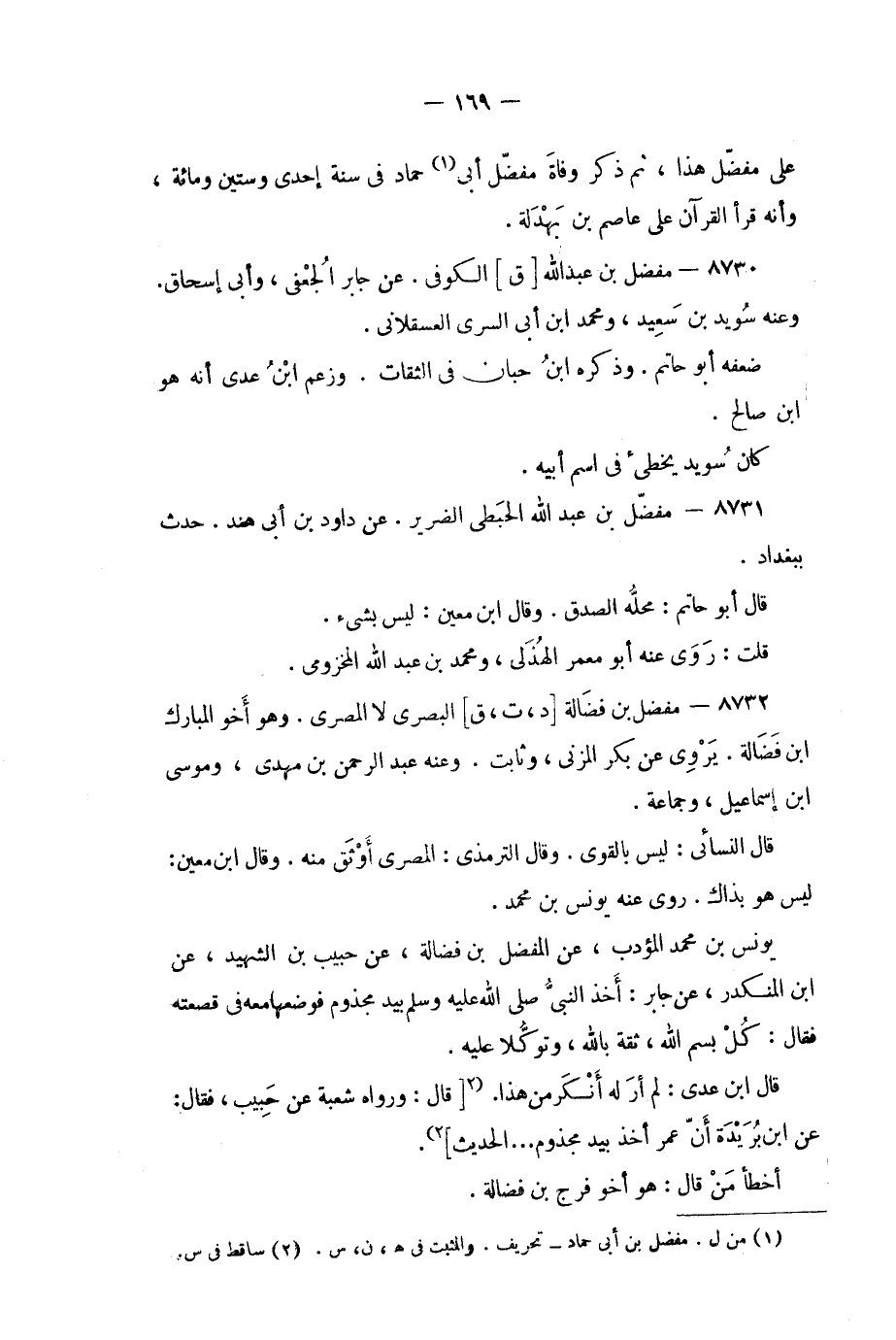 على مفضل هذا، ثم ذكر وفاة مفضل أبي (1) حماد في سنة إحدى وستين ومائة، وأنه قرأ القرآن على عاصم بن بهدلة.