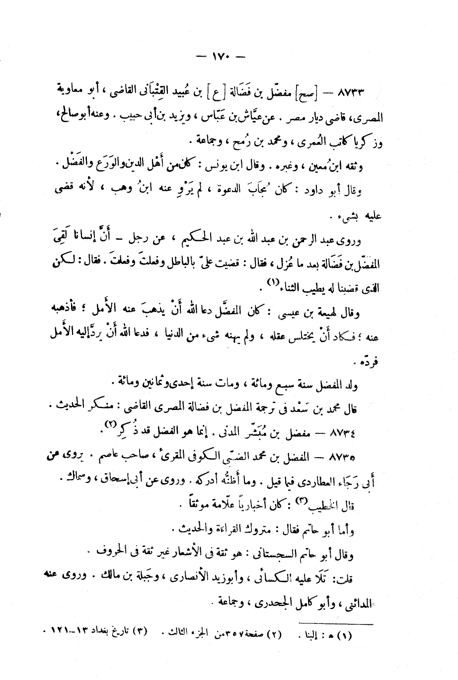 8733 -[صح] مفضل بن فضالة [ع] بن عبيد القتبانى القاضي، أبو معاوية المصري، قاضى ديار مصر.
