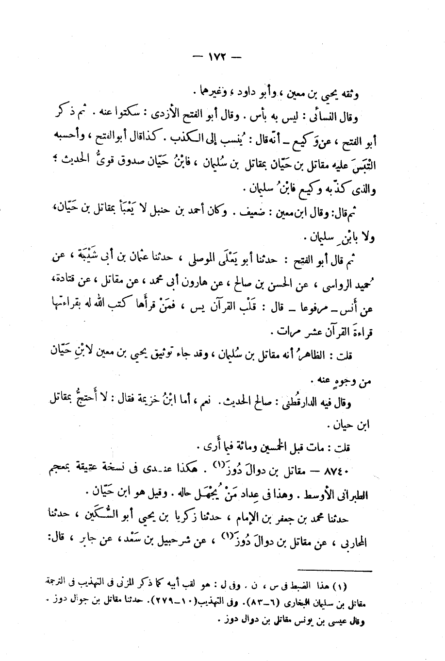 قلت: الظاهر أنه مقاتل بن سليمان، وقد جاء توثيق يحيى بن معين لابن حيان من وجوه عنه.