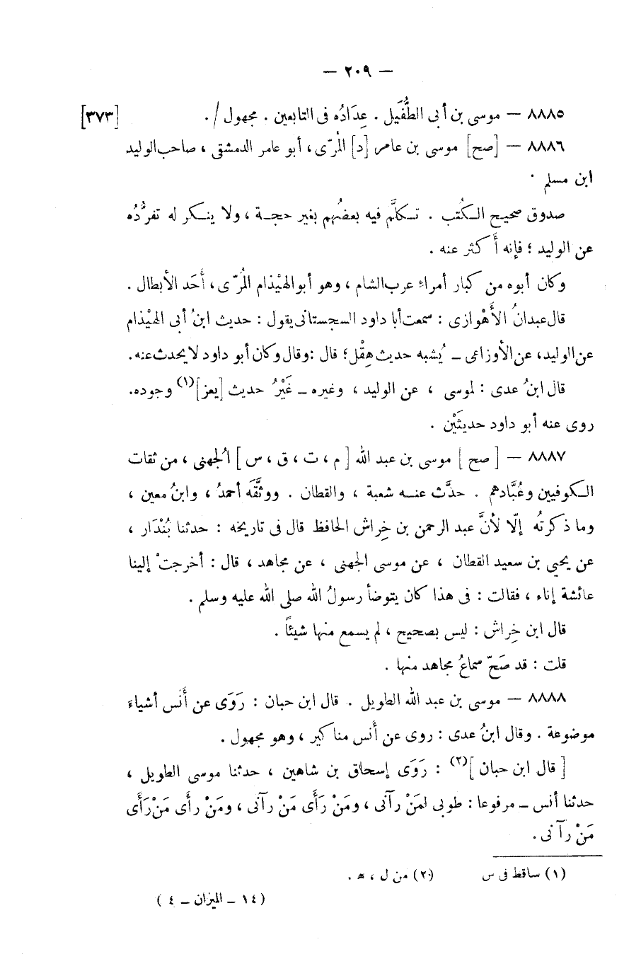 [قال ابن حبان] (2) : روى إسحاق بن شاهين، حدثنا موسى الطويل، حدثنا أنس - مرفوعاً: طوبى لمن رأني، ومن رأى من رأني، ومن رأى من رأى من رأني.