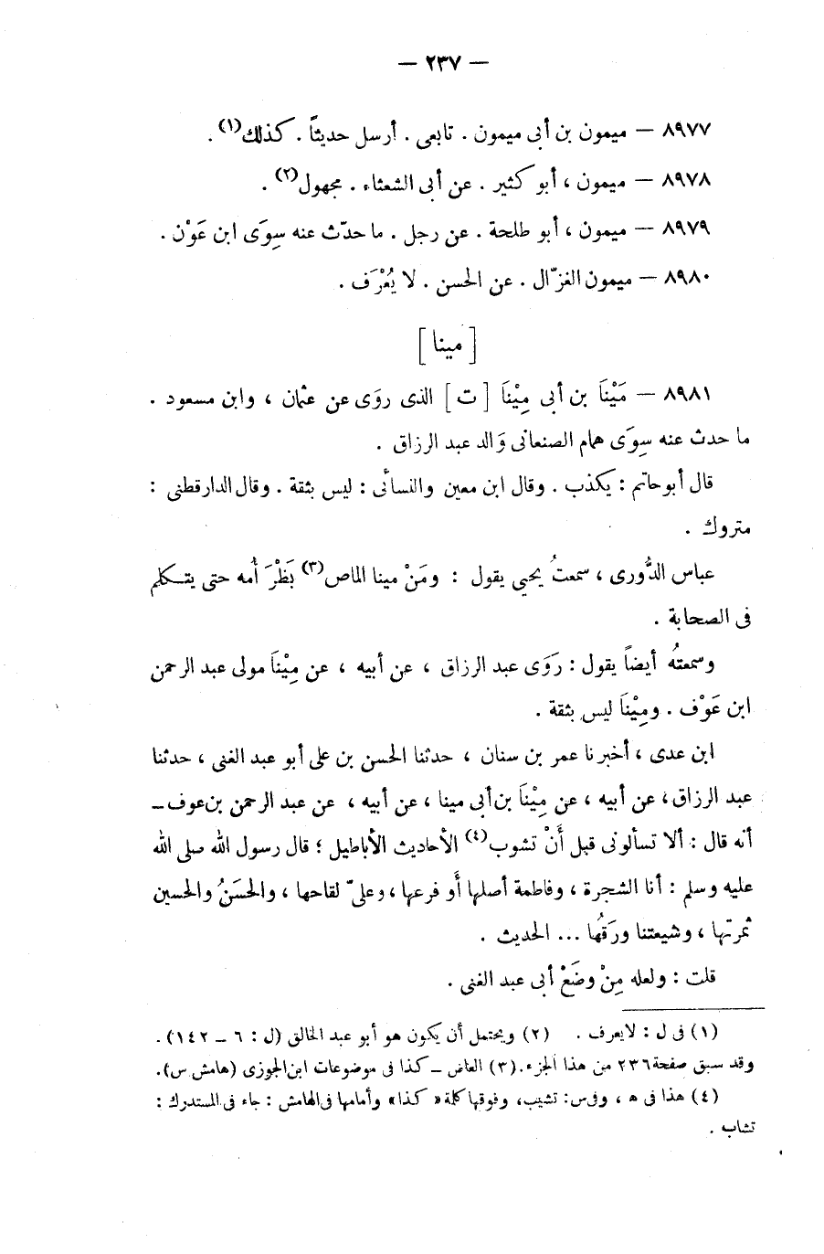 عباس الدوري، سمعت يحيى يقول: ومن مينا الماص (3) بظر أمه حتى يتكلم في الصحابة.