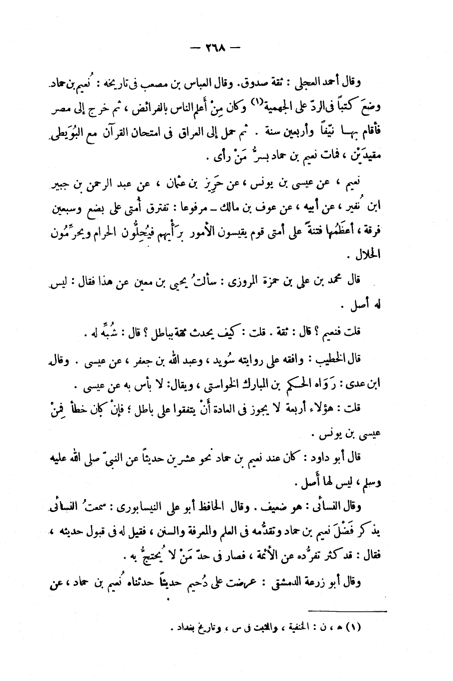 قال أبو داود: كان عند نعيم بن حماد نحو عشرين حديثاً عن النبي صلى الله عليه وسلم، ليس لها أصل.