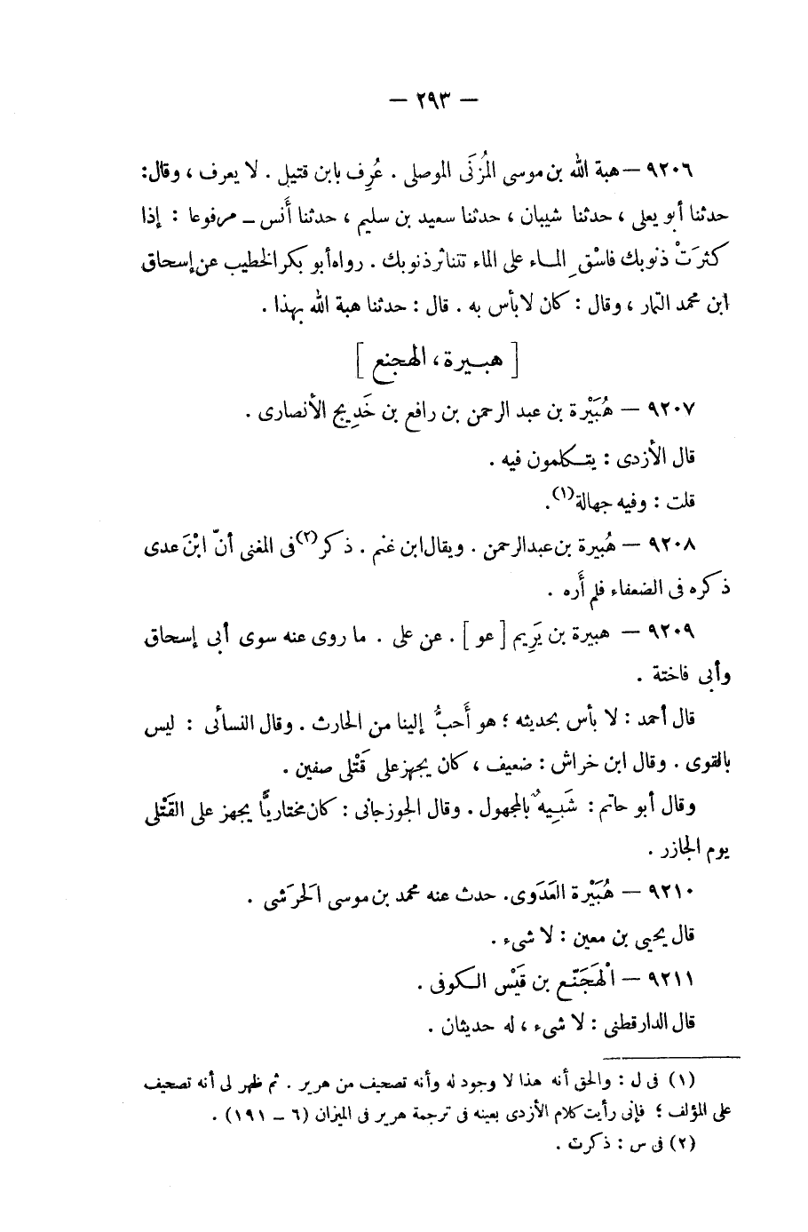 على المؤلف، فإنى رأيت كلام الازدي بعينه في ترجمة هرير في الميزان (6 - 191) .