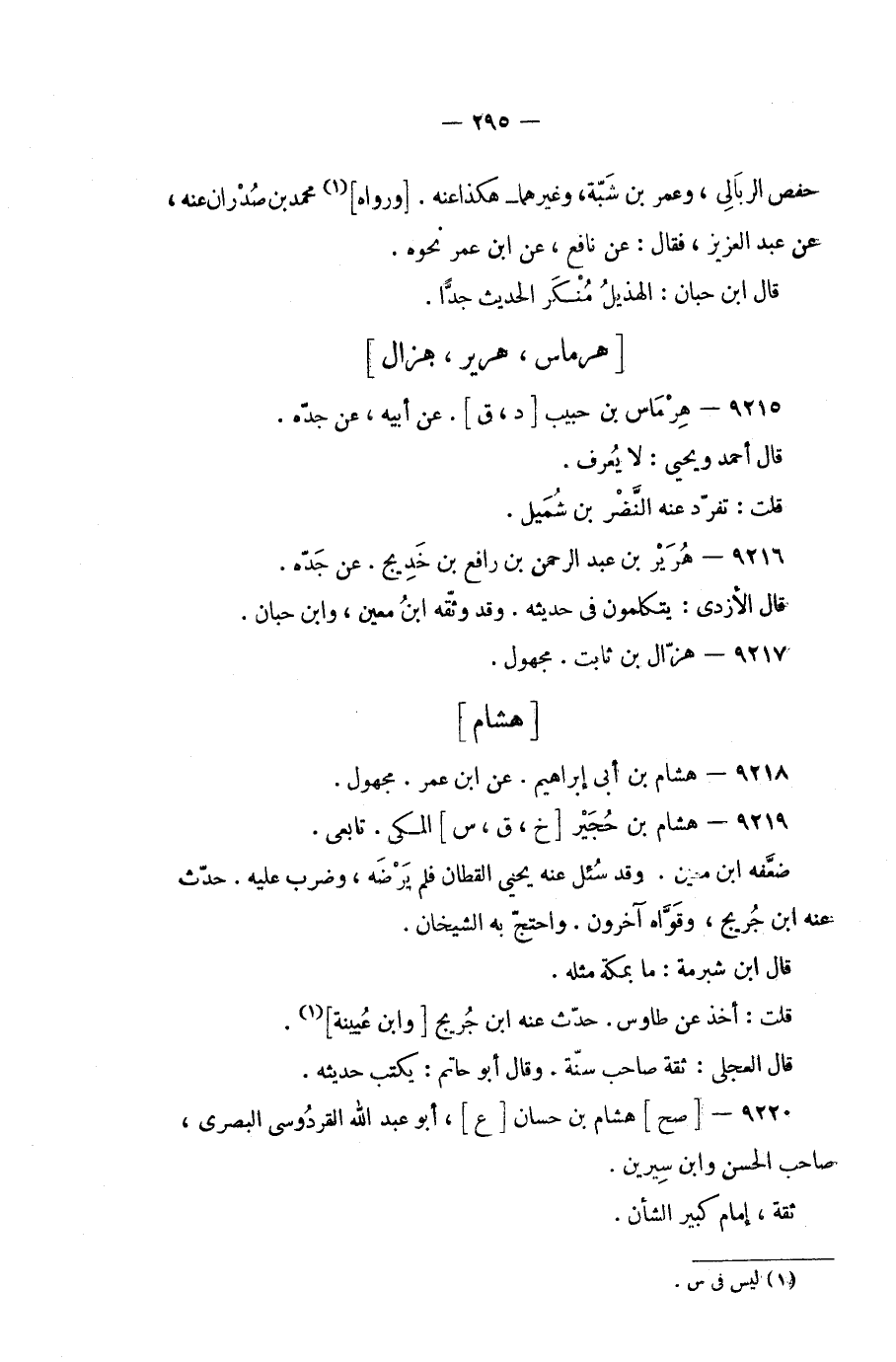 9220 -[صح] هشام بن حسان [ع] ، أبو عبد الله القردوسى البصري، صاحب الحسن وابن سيرين.