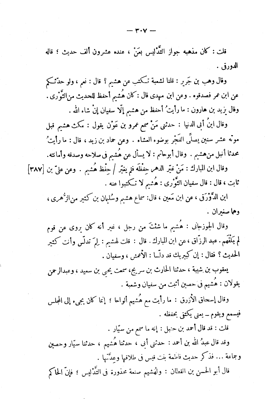 وعن علي بن [387] ثابت، قال: قال سفيان الثوري: هشيم لا تكتبوا عنه.