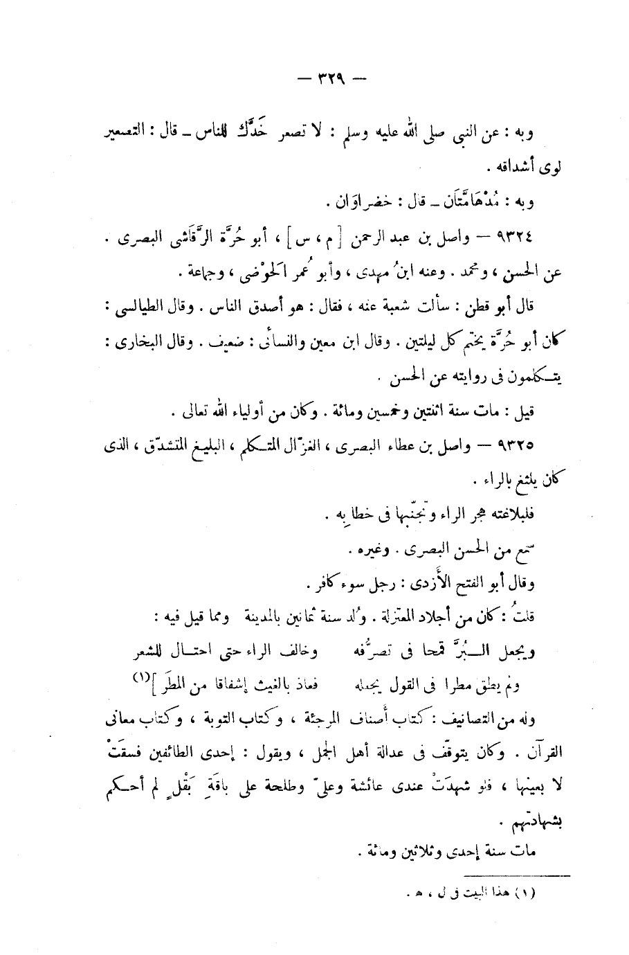 9325 - واصل بن عطاء البصري، الغزال المتكلم، البليغ المتشدق، الذي كان يلثغ بالراء.