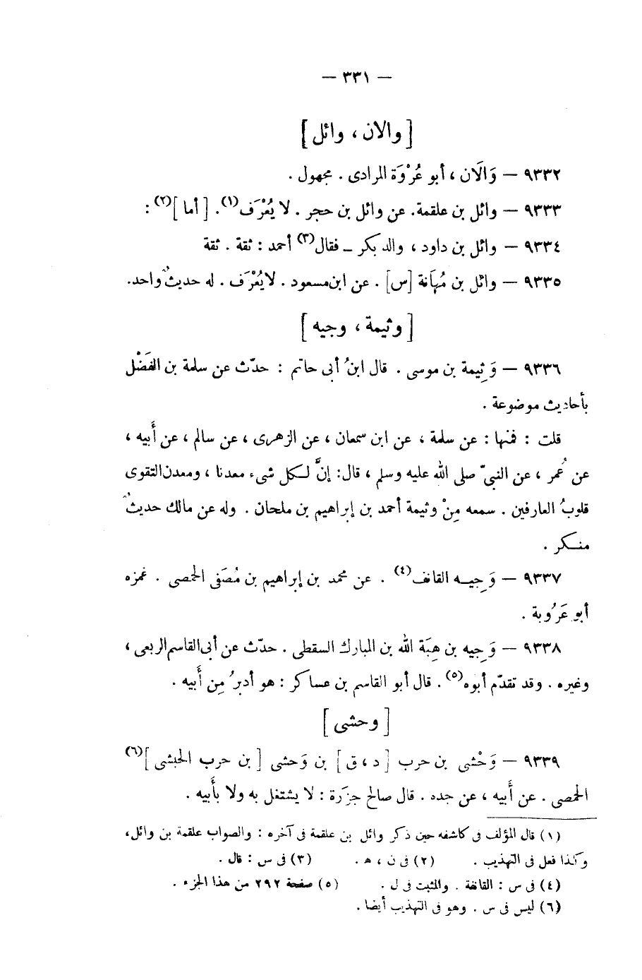 9339 - وحشي بن حرب [د، ق] بن وحشى [بن حرب الحبشي] (6) الحمصي.