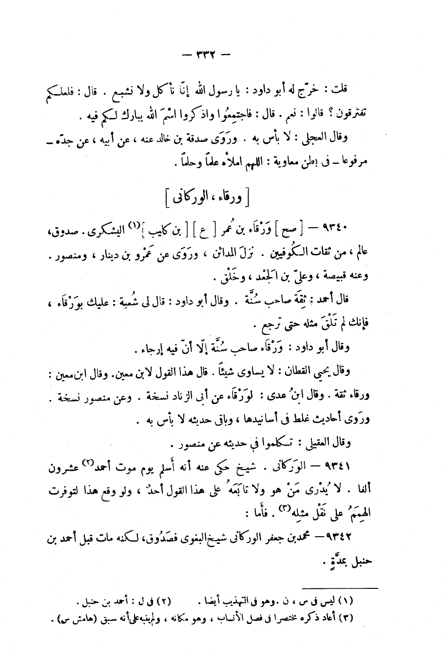 فأما: 9342 - محمد بن جعفر الوركانى شيخ البغوي فصدوق، لكنه مات قبل أحمد بن حنبل بمدة.