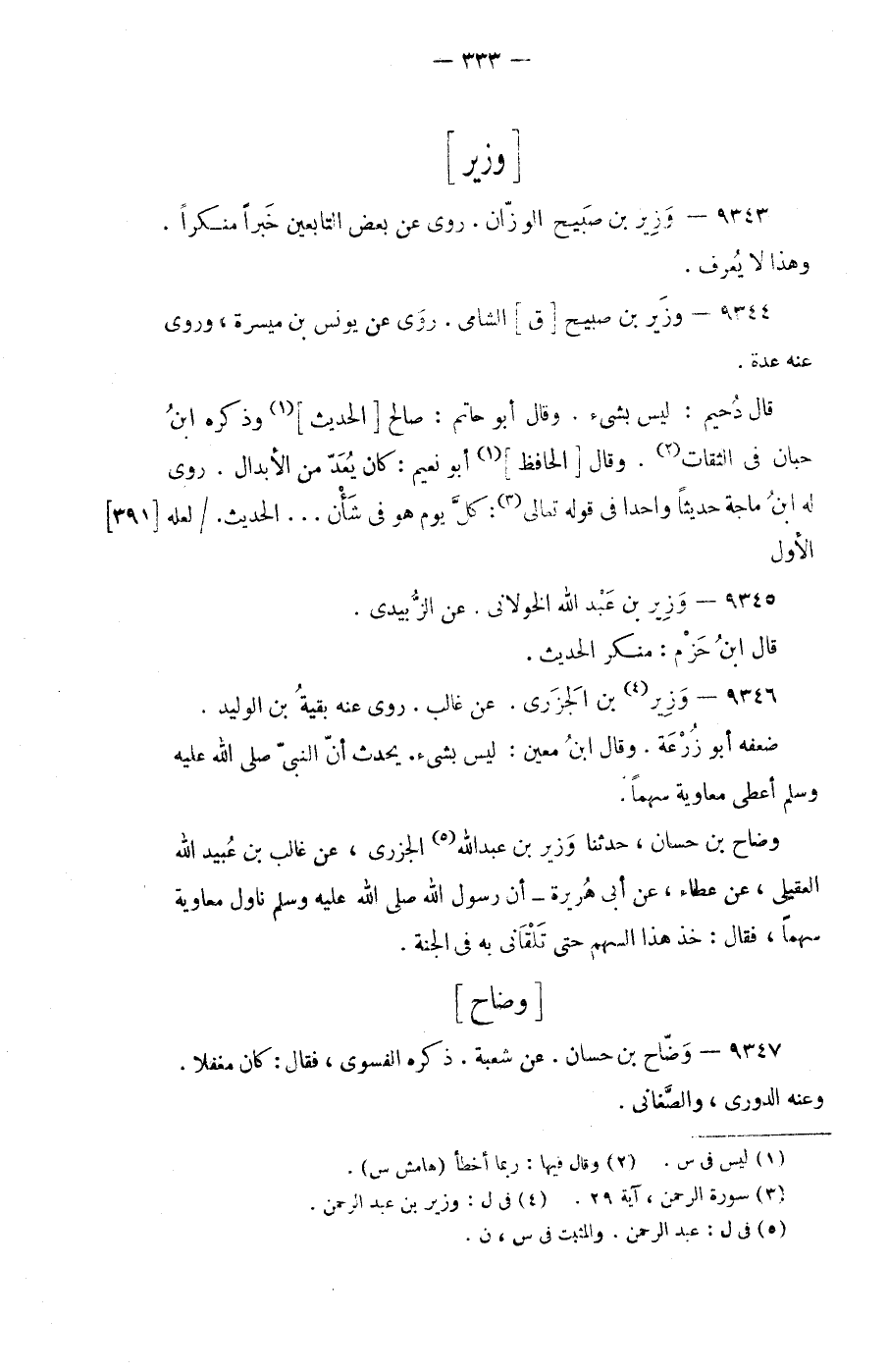 / لعله [391] الأول 9345 - وزير بن عبد الله الخولاني.