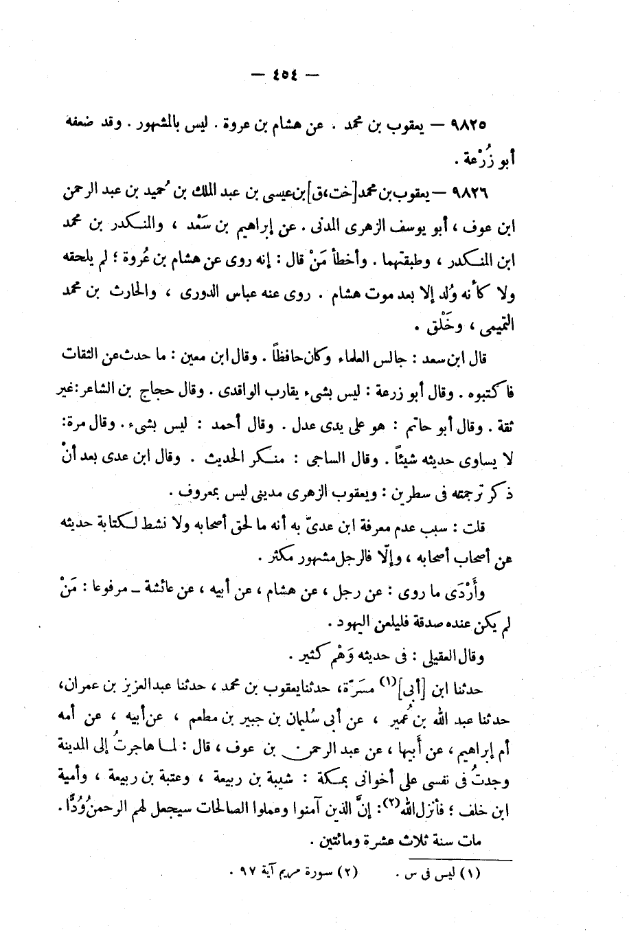 وقال ابن عدي بعد أن ذكر ترجمته في سطرين: ويعقوب الزرهى مدينى ليس بمعروف.