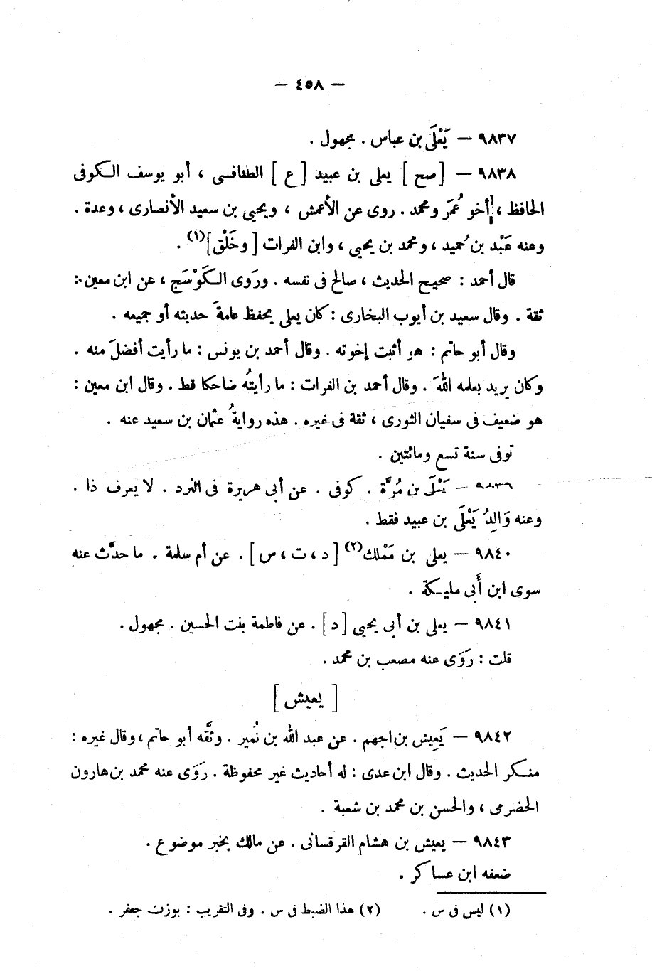 9838 -[صح] يعلى بن عبيد [ع] الطنافسى، أبو يوسف الكوفي الحافظ، أخو عمر ومحمد.