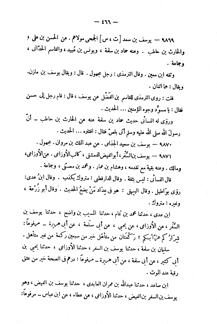 9871 - يوسف بن السفر، أبو الفيض الدمشقي، كاتب الأوزاعي.