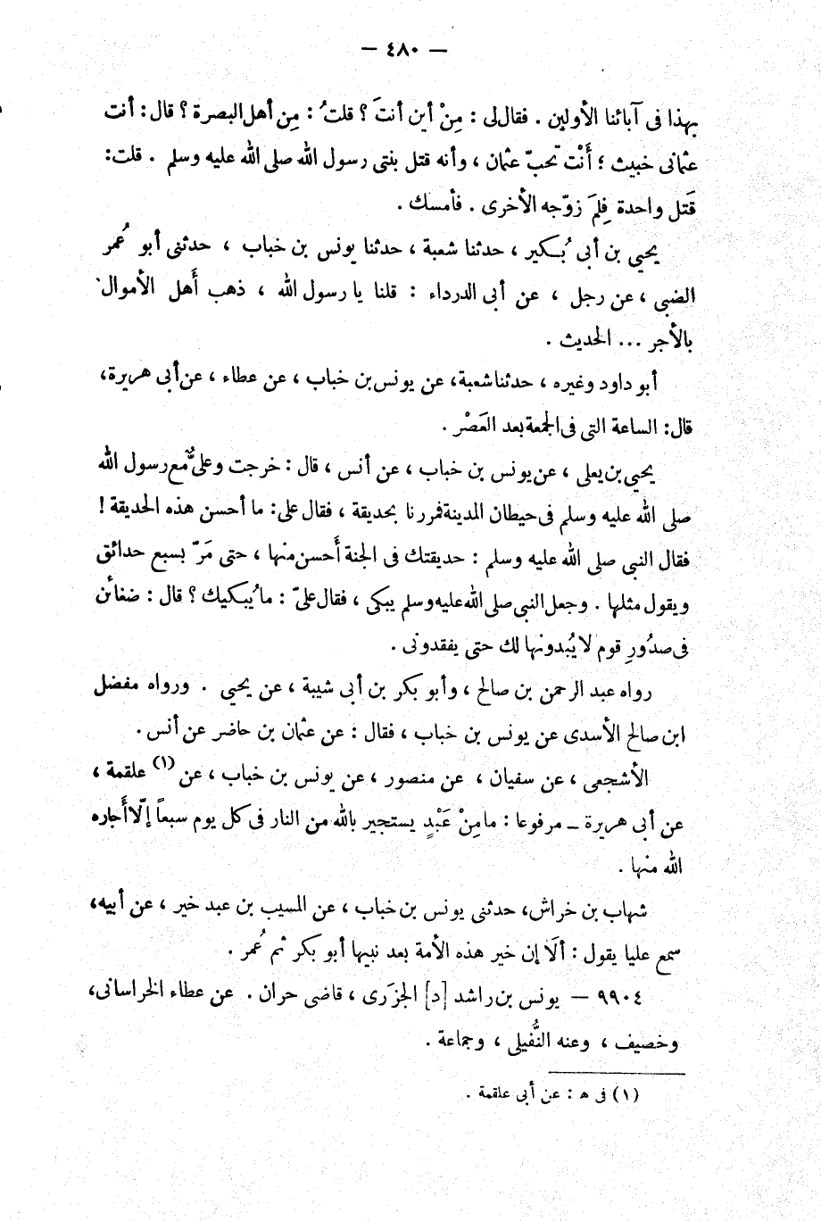 ورواه مفضل ابن صالح الأسدي عن يونس بن خباب، فقال: عن عثمان بن حاضر عن أنس.