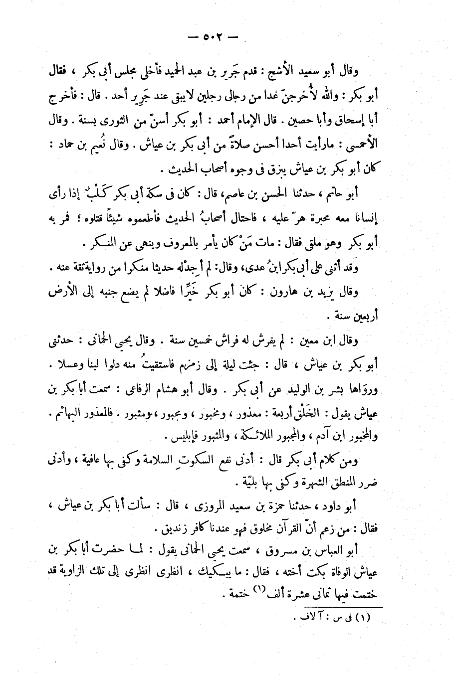 الاحمسي: ما رأيت أحدا أحسن صلاة من أبي بكر بن عياش.