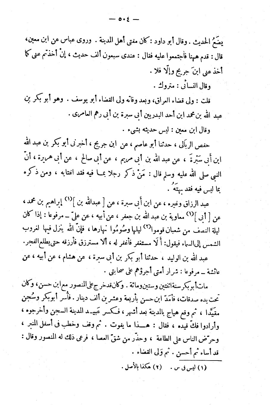 عبد الله بن الوليد، حدثنا أبو بكر بن أبي سبرة، عن هشام، عن أبيه، عن عائشة - مرفوعاً: شرار أمتى أجرؤهم على صحابتي.