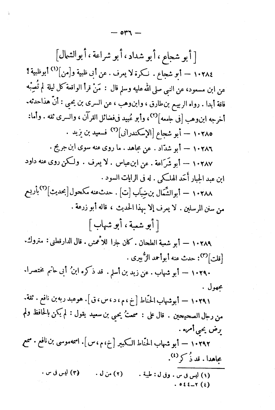 [أبو شجاع، أبو شداد، أبو شراعة، أبو الشمال]