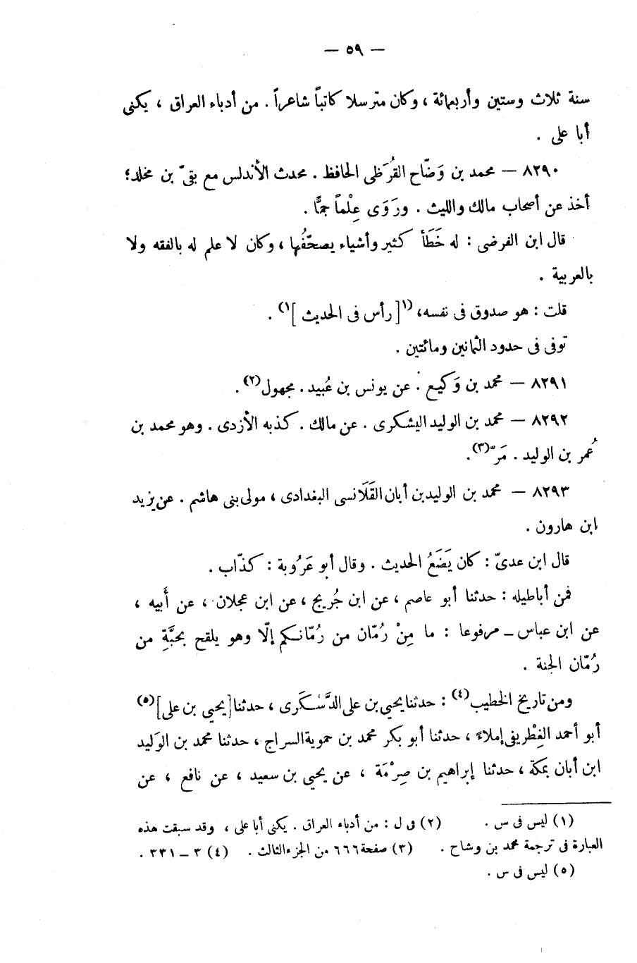 ومن تاريخ الخطيب (4) : حدثنا يحيى بن علي الدسكرى، حدثنا [يحيى بن علي] (5) أبو أحمد الغطريفى إملاء، حدثنا أبو بكر محمد بن حموية السراج، حدثنا محمد بن الوليد ابن أبان بمكة، حدثنا إبراهيم بن صرمة، عن يحيى بن سعيد، عن نافع، عن