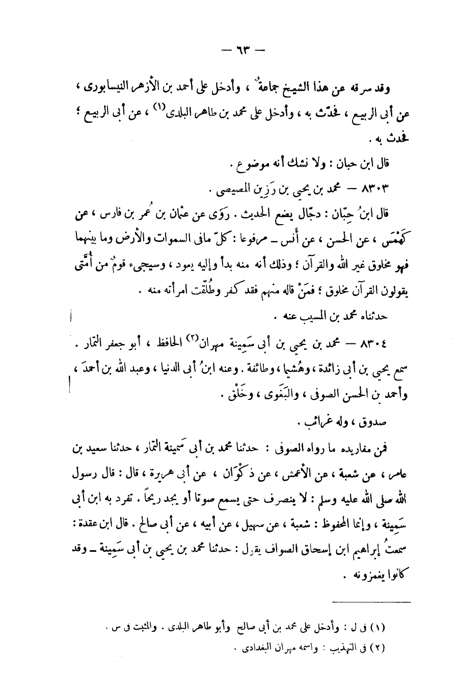 8304 - محمد بن يحيى بن أبي سمينة مهران (2) الحافظ، أبو جعفر التمار.