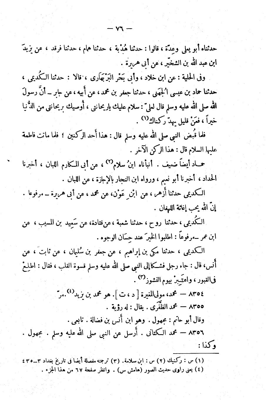 (3) ترجمته مفصلة أيضا في تاريخ بغداد 3 - 435 (4) يعنى راوي حديث الصور (هامش س) .