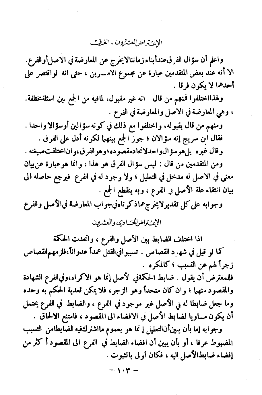 وَاعْلَمْ أَنَّ سُؤَالَ الْفَرْقِ عِنْدَ أَبْنَاءِ زَمَانِنَا لَا يَخْرُجُ عَنِ الْمُعَارَضَةِ فِي الْأَصْلِ أَوِ الْفَرْعِ إِلَّا أَنَّهُ عِنْدَ بَعْضِ الْمُتَقَدِّمِينَ عِبَارَةٌ عَنْ مَجْمُوعِ الْأَمْرَيْنِ، حَتَّى إِنَّهُ لَوِ اقْتَصَرَ عَلَى أَحَدِهِمَا لَا يَكُونُ فَرْقًا.