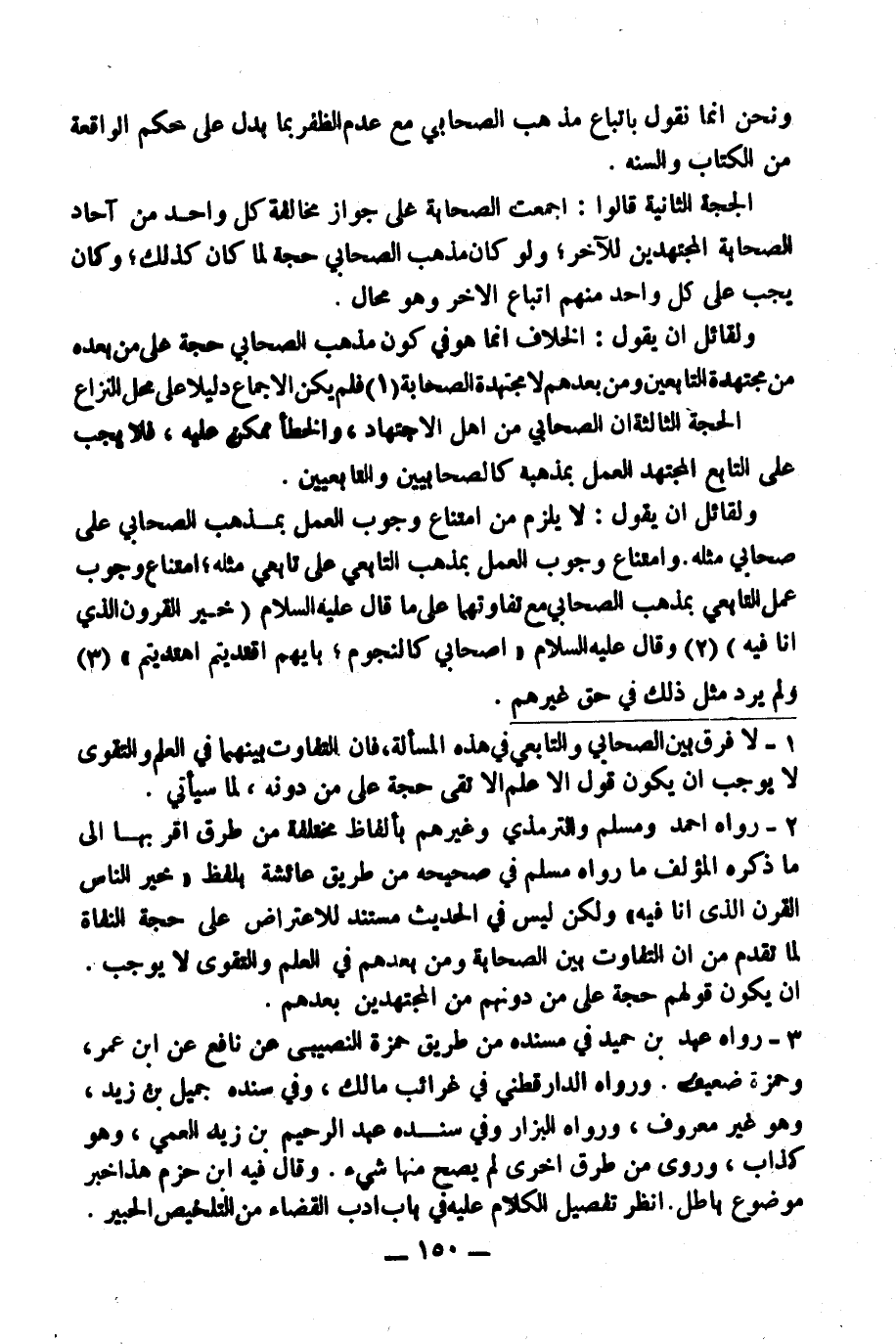 (١) لَا فَرْقَ بَيْنَ الصَّحَابِيِّ وَالتَّابِعِيِّ فِي هَذِهِ الْمَسْأَلَةِ، فَإِنَّ التَّفَاوُتَ بَيْنَهُمَا فِي الْعِلْمِ وَالتَّقْوَى لَا يُوجِبُ أَنْ يَكُونَ قَوْلُ الْأَعْلَمِ الْأَتْقَى حُجَّةً عَلَى مَنْ دُونَهُ لِمَا سَيَأْتِي.