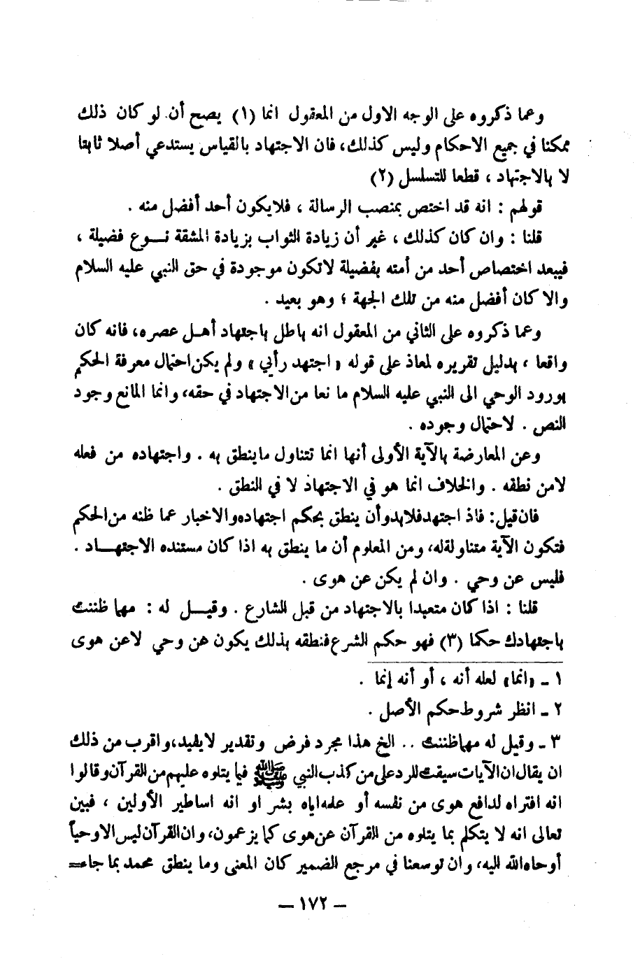وَعَمَّا ذَكَرُوهُ عَلَى الْوَجْهِ الْأَوَّلِ مِنَ الْمَعْقُولِ (١) إِنَّمَا يَصِحُّ أَنْ لَوْ كَانَ ذَلِكَ مُمْكِنًا فِي جَمِيعِ الْأَحْكَامِ وَلَيْسَ كَذَلِكَ، فَإِنَّ الِاجْتِهَادَ بِالْقِيَاسِ يَسْتَدْعِي أَصْلًا ثَابِتًا لَا بِالِاجْتِهَادِ قَطْعًا لِلتَّسَلْسُلِ. (٢) قَوْلُهُمْ: إِنَّهُ قَدِ اخْتُصَّ بِمَنْصِبِ الرِّسَالَةِ، فَلَا يَكُونُ أَحَدٌ أَفْضَلَ مِنْهُ.