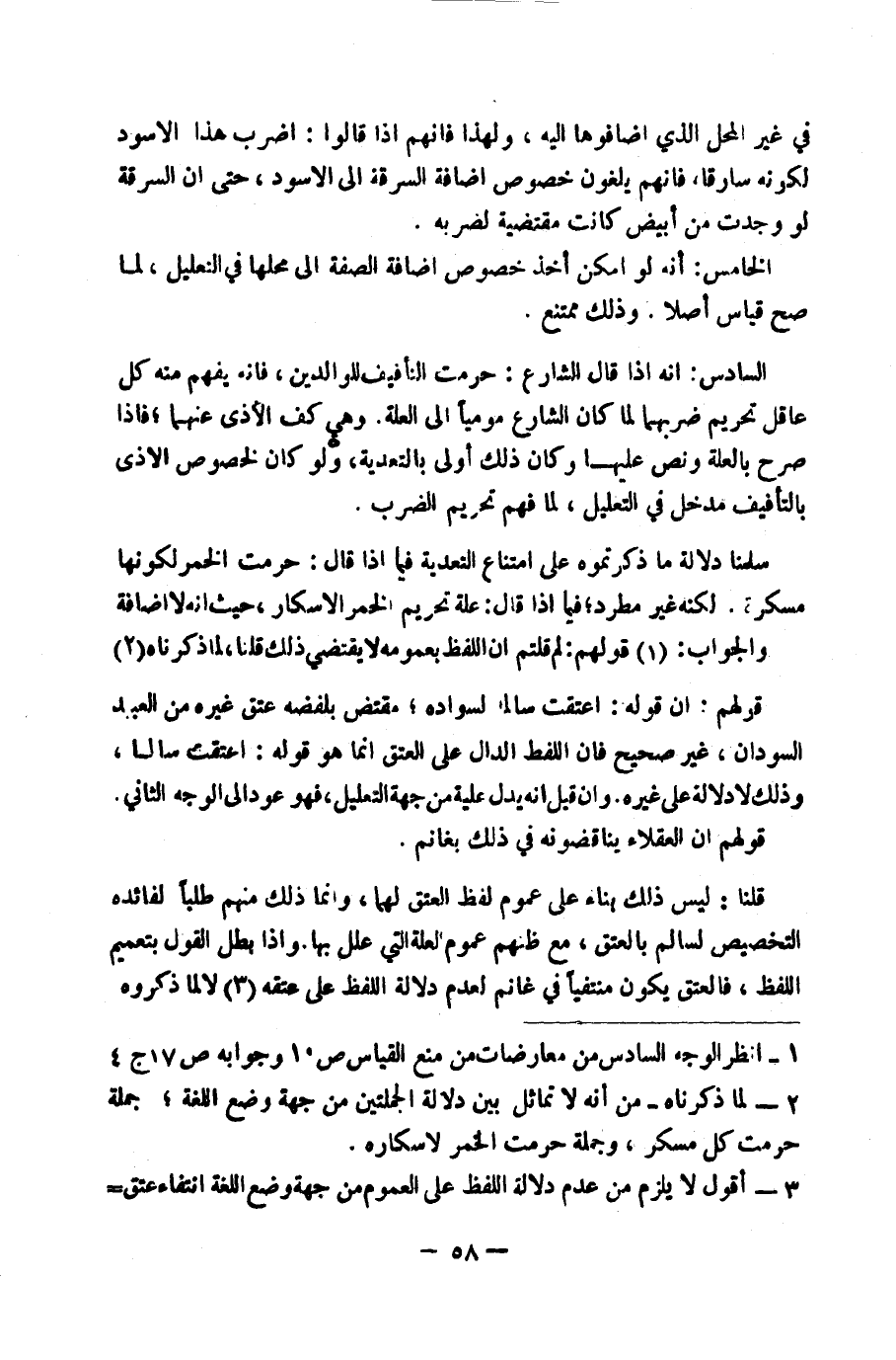 (١) انْظُرِ الْوَجْهَ السَّادِسَ مِنْ مُعَارَضَاتِ مَنْ مَنَعَ الْقِيَاسَ ص ١٠ وَجَوَابُهُ ص ١٧ ج٤.