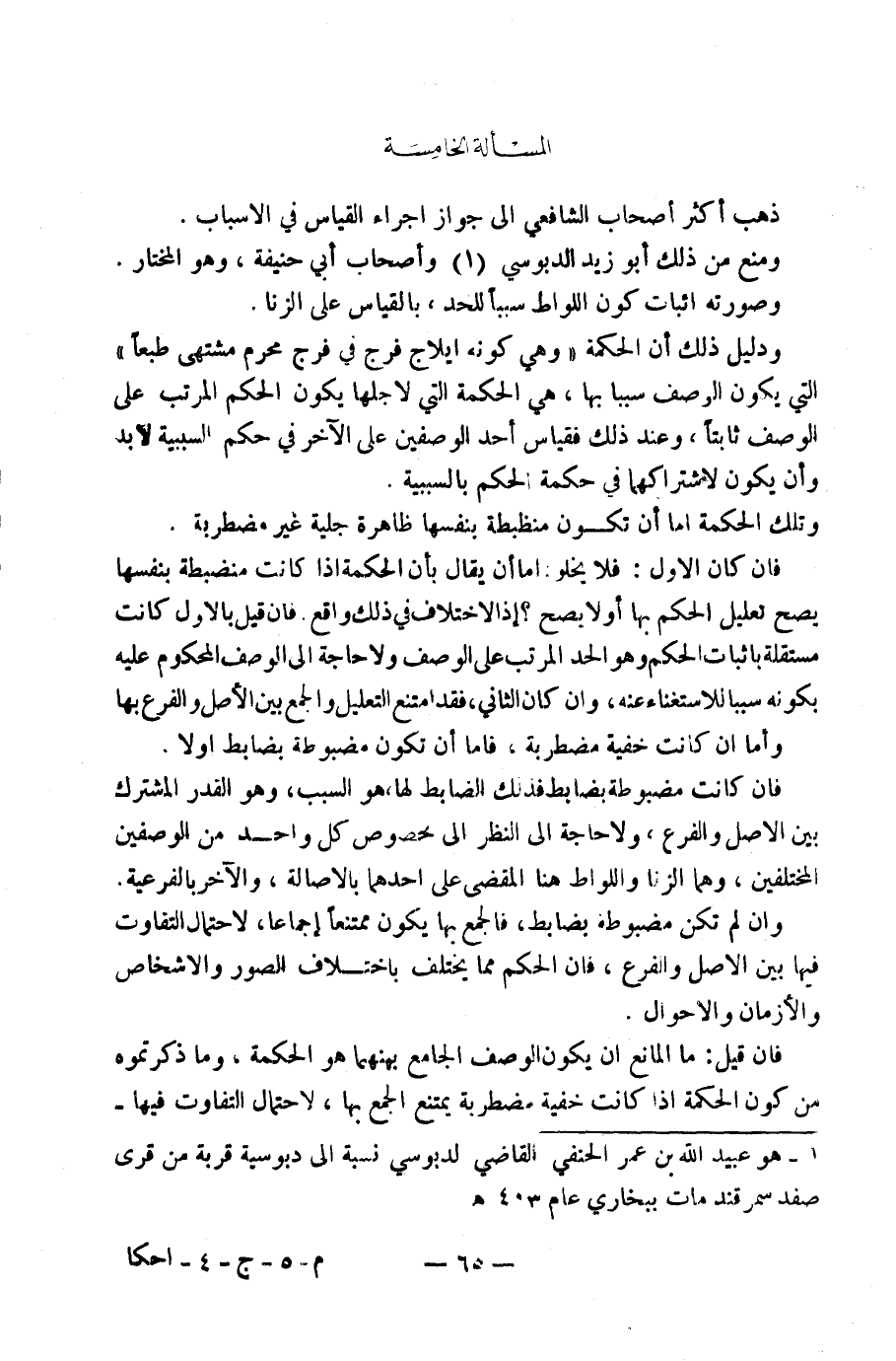(١) هُوَ عُبَيْدُ اللَّهِ بْنُ عُمَرَ الْحَنَفِيُّ الْقَاضِي الدَّبُوسِيُّ نِسْبَةً إِلَى دَبُوسِيَّةَ قَرْيَةٍ مِنْ قُرَى صَفْدِ سَمَرْقَنْدَ مَاتَ بِبُخَارَى عَامَ ٤٠٣ هـ.