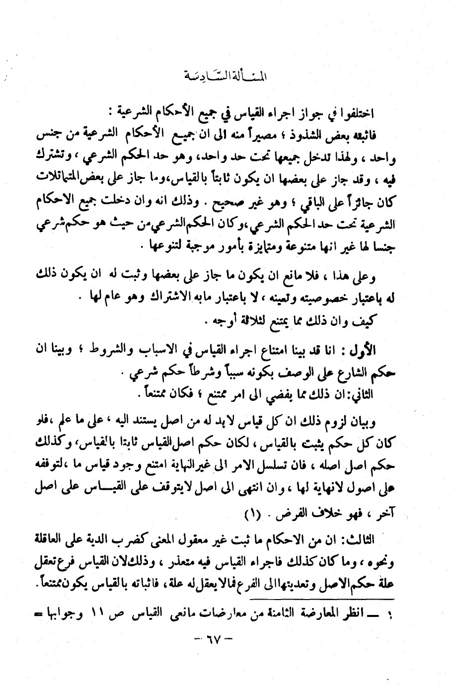 (١) انْظُرِ الْمُعَارَضَةَ الثَّامِنَةَ مِنْ مُعَارَضَاتِ مَانِعِي الْقِيَاسِ ص ١١ وَجَوَابَهَا ص ١٨ ج٤، وَانْظُرْ ذَلِكَ أَيْضًا فِي ص٧٠٨ - ٧٠٩ الْجُزْءُ الثَّانِي مِنْ كِتَابِ الْمُعْتَمِدِ لِأَبِي الْحُسَيْنِ الْبَصْرِيِّ.