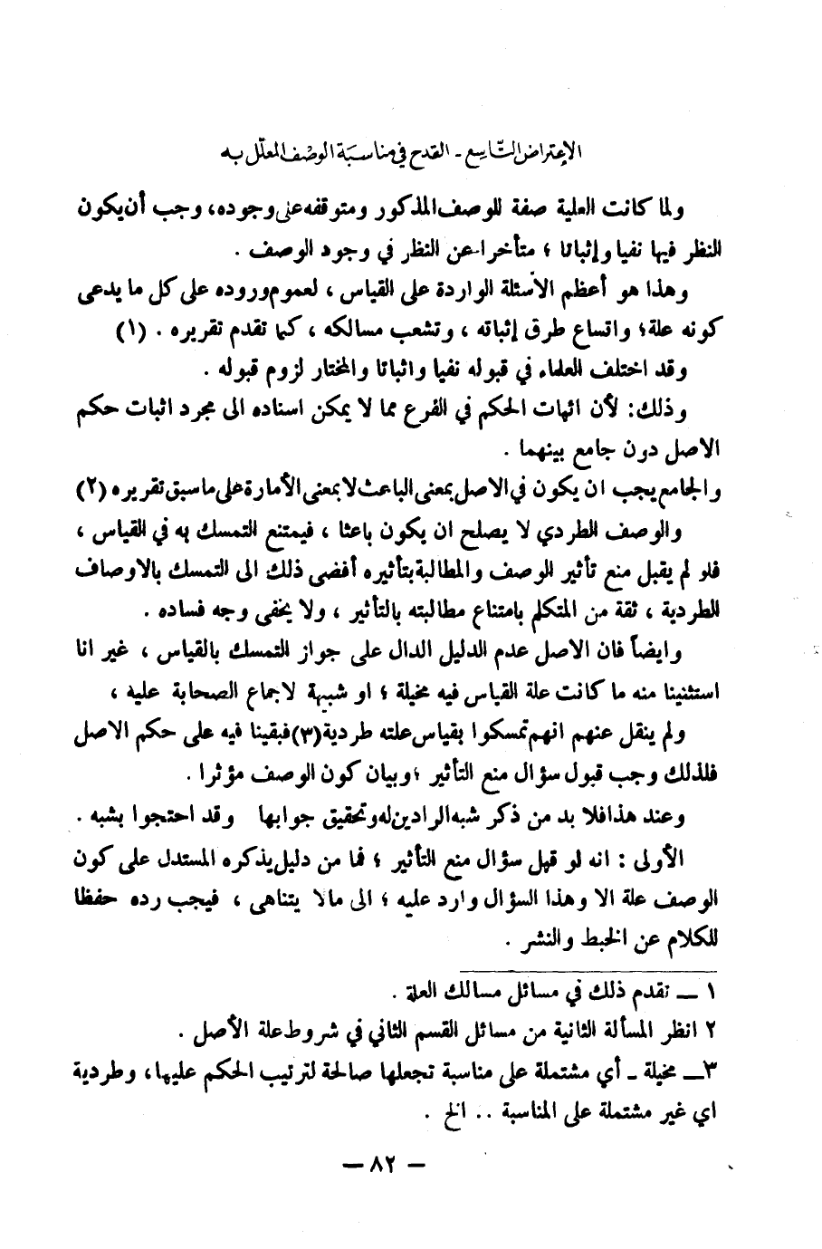 (٢) انْظُرِ الْمَسْأَلَةَ الثَّانِيَةَ مِنْ مَسَائِلِ الْقِسْمِ الثَّانِي فِي شُرُوطِ عِلَّةِ الْأَصْلِ. .