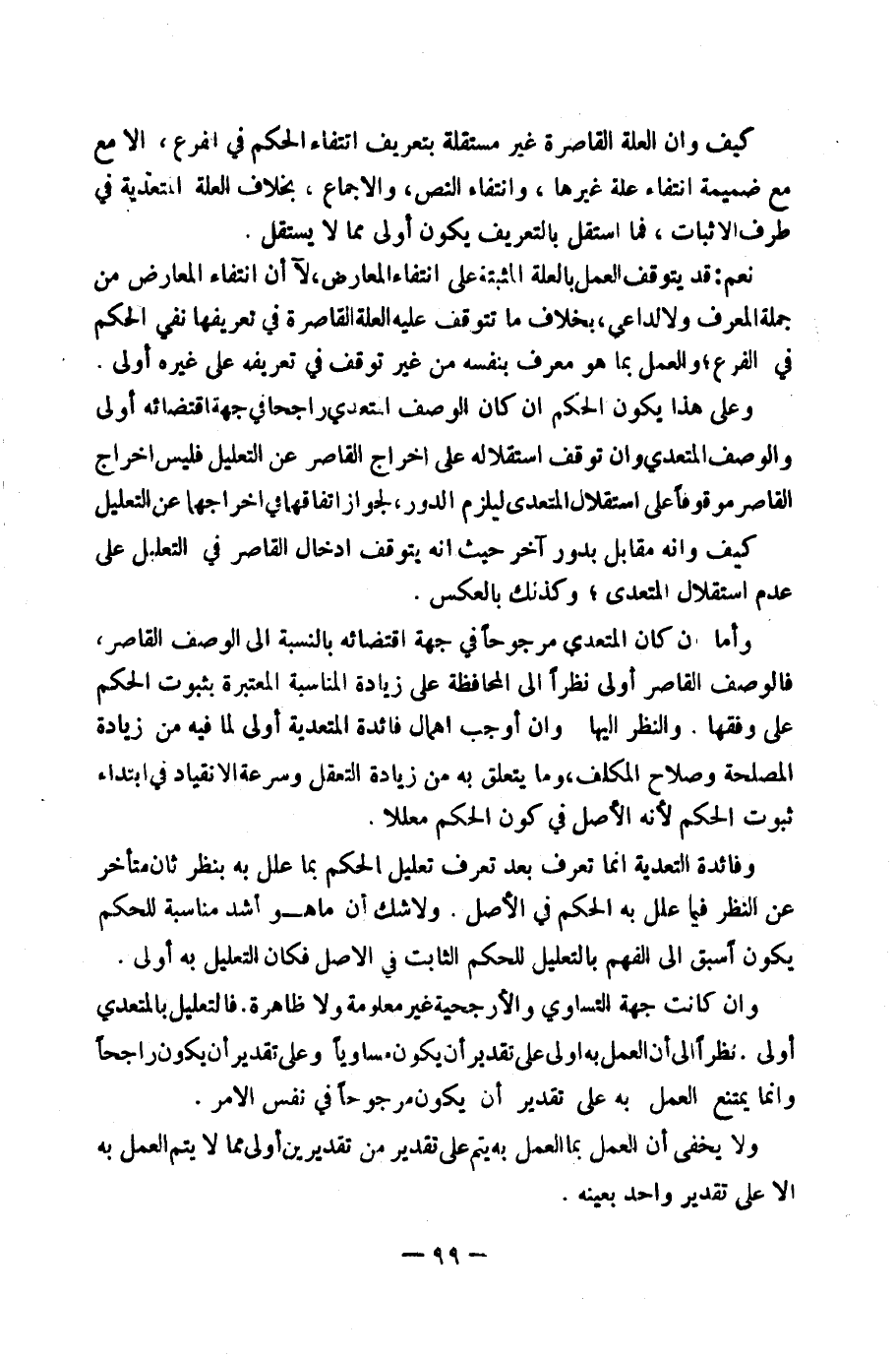 كَيْفَ وَإِنَّ الْعِلَّةَ الْقَاصِرَةَ غَيْرُ مُسْتَقِلَّةٍ بِتَعْرِيفِ انْتِفَاءِ الْحُكْمِ فِي الْفَرْعِ إِلَّا مَعَ ضَمِيمَةِ انْتِفَاءِ عِلَّةِ غَيْرِهَا، وَانْتِفَاءُ النَّصِّ وَالْإِجْمَاعِ بِخِلَافِ الْعِلَّةِ الْمُتَعَدِّيَةِ فِي طَرْفِ الْإِثْبَاتِ، فَمَا اسْتُقِلَّ بِالتَّعْرِيفِ يَكُونُ أَوْلَى مِمَّا لَا يُسْتَقَلُّ.