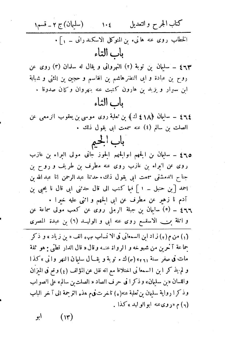 (1) من م (2) زاد ابن السمعاني في الانساب 573 الف " بن زياد " وذكر جماعة آخرين من شيوخه والرواة عنه وقال " قال الدارقطني: هو ثقة مات في صفر سنة 261 " (3) ك " توبة ويقال سليمان النهرواني " كذا ولم يذكر ابن السمعاني اختلافا مع انه نقل عن المؤلف (4) وقع في الميزان واللسان " بن سليمان " وذكرا في حرف الصاد " الصلت بن سالم " على الصواب وذكرا رواية سليمان بن ثعلبة عنه (5) تأخرت في م هذه الترجمة إلى آخر الباب (6) م " روى عنه أبو الوليد " كذا.