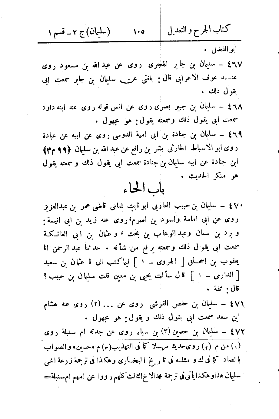 471 - سليمان بن حفص القرشي روى عن ... (2) روى عنه هشام ابن سعد سمعت أبي يقول ذلك ويقول: هو مجهول.