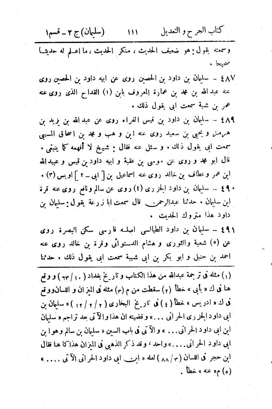 (1) مثله في ترجمة عبد الله من هذا الكتاب وتاريخ بغداد (10 / 63) ووقع هنا في ك " بأبى " خطأ (2) سقطت من م (3) مثله في الميزان واللسان ووقع في ك " ادريس " خطأ (4) في تاريخ البخاري (2 / 2 / 12) " سليمان بن ابى داود الجزرى الحرانى ... " وقضيته ان هذا والآتي بعد تراجم " سليمان ابن ابى داود الحرانى ... " والآتي في باب السين
