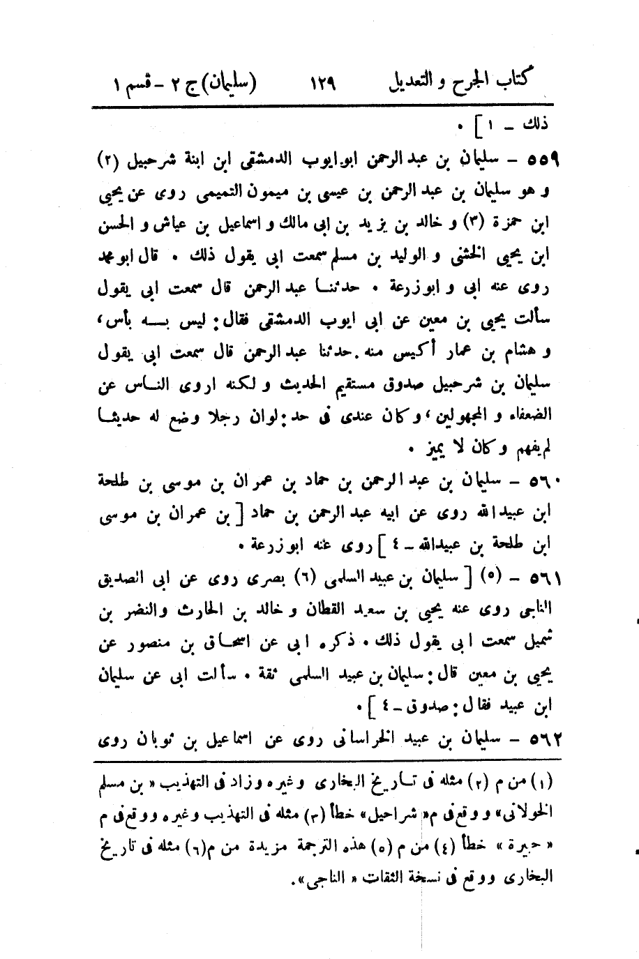 559 - سليمان بن عبد الرحمن أبو أيوب الدمشقي ابن ابنة شرحبيل (2) وهو سليمان بن عبد الرحمن بن عيسى بن ميمون التميمي روى عن يحيى ابن حمزة (3) وخالد بن يزيد بن أبي مالك وإسماعيل بن عياش والحسن ابن يحيى الخشني والوليد بن مسلم سمعت أبي يقول ذلك.