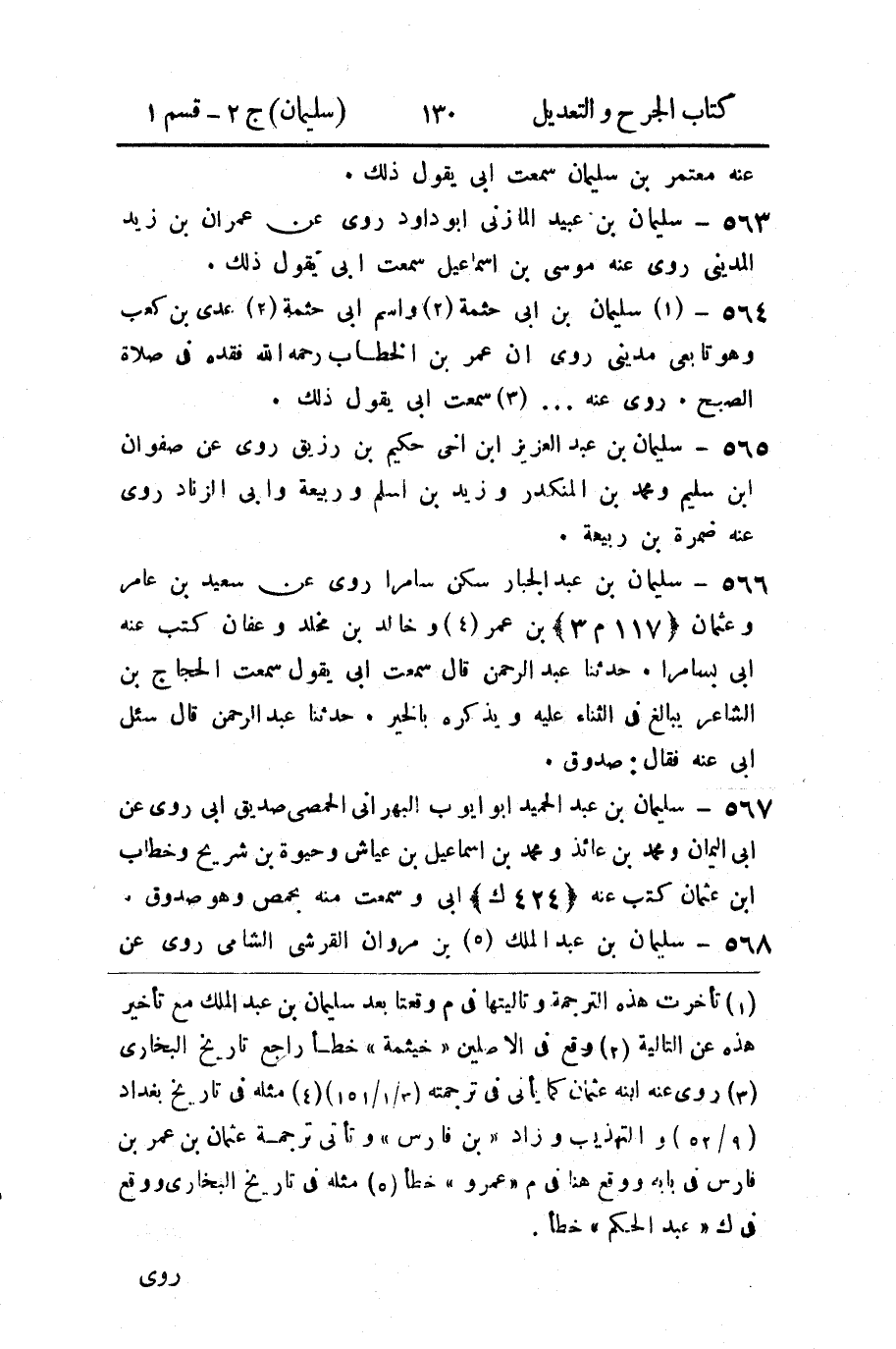 (1) تأخرت هذه الترجمة وتاليتها في م وقعتا بعد سليمان بن عبد الملك مع تأخير هذه عن التالية (2) وقع في الاصلين " خيثمة " خطأ راجع تاريخ البخاري (3) روى عنه ابنه عثمان كما يأتي في ترجمته (3 / 1 / 151) (4) مثله في تاريخ بغداد (9 / 52) والتهذيب وزاد " بن فارس " وتأتى ترجمة عثمان بن عمر بن فارس في بابه ووقع هنا في م " عمرو " خطأ (5) مثله في تاريخ البخاري ووقع في ك " عبد الحكم " خطأ.