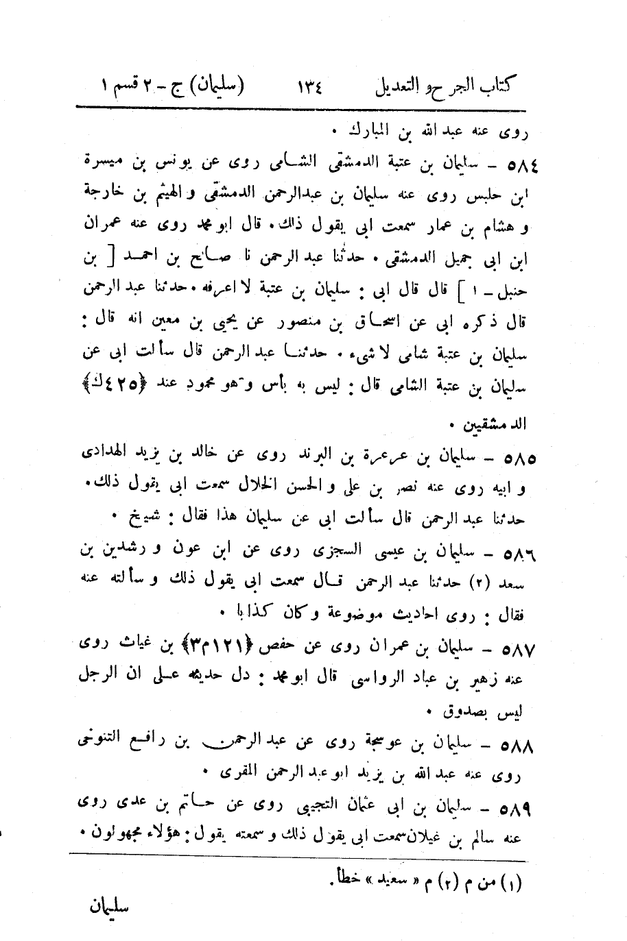 587 - سليمان بن عمران روى عن حفص (121 م 3) بن غياث روى عنه زهير بن عباد الرواسي قال أبو محمد: