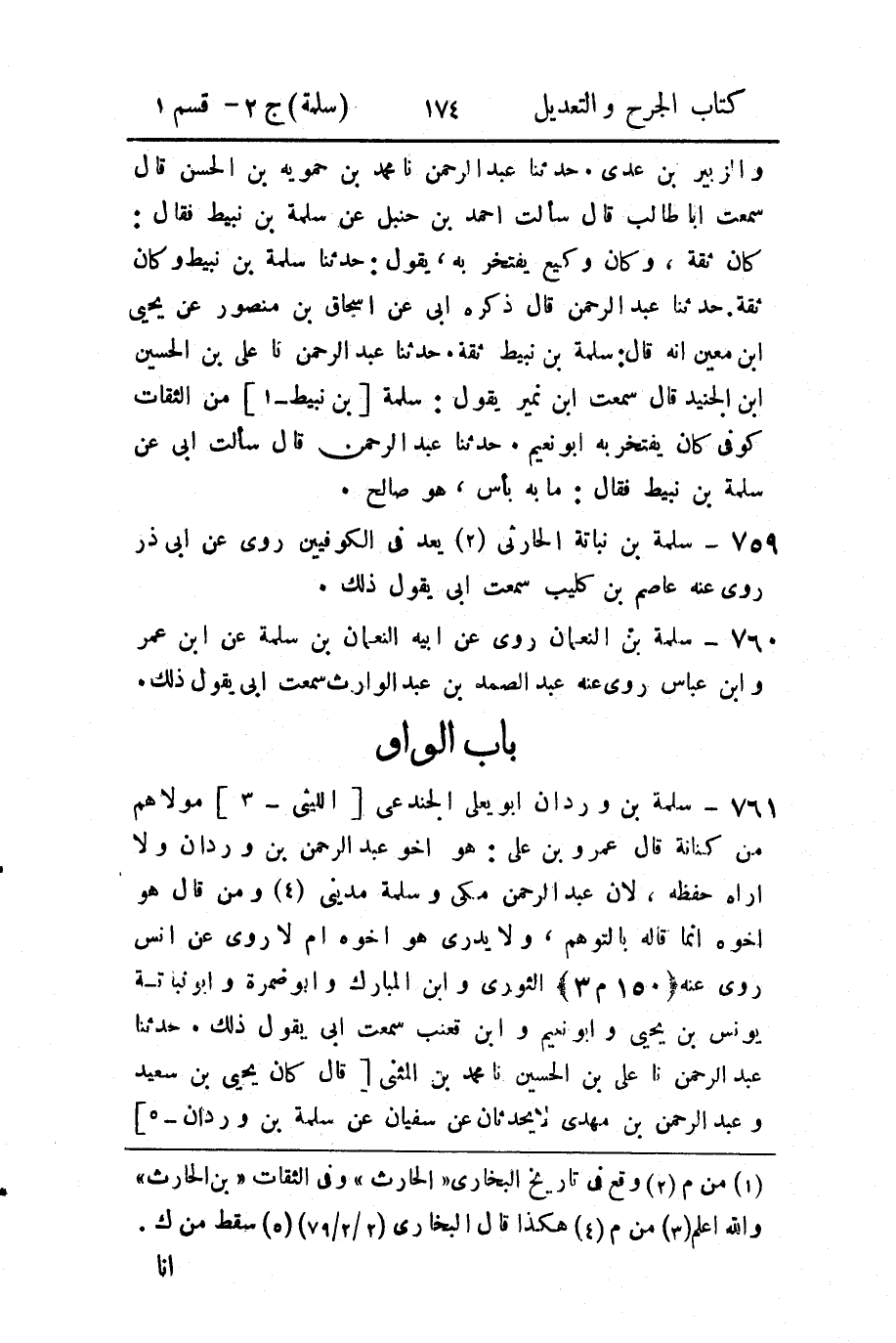 حدثنا عبد الرحمن نا علي بن الحسين نا محمد بن المثنى [قال كان يحيى بن سعيد وعبد الرحمن بن مهدي لا يحدثان عن سفيان عن سلمة بن وردان - 5]