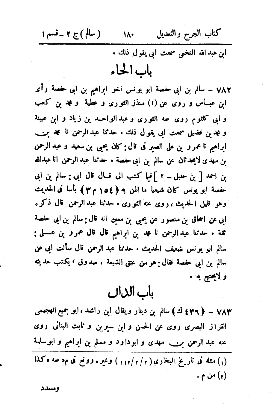 783 - (436 ك) سالم بن دينار ويقال ابن راشد، أبو جميع الهجيمي القزاز البصري روى عن الحسن وابن سيرين وثابت البناني روى عنه عبد الرحمن بن مهدي وأبو داود ومسلم بن إبراهيم وأبو سلمة
