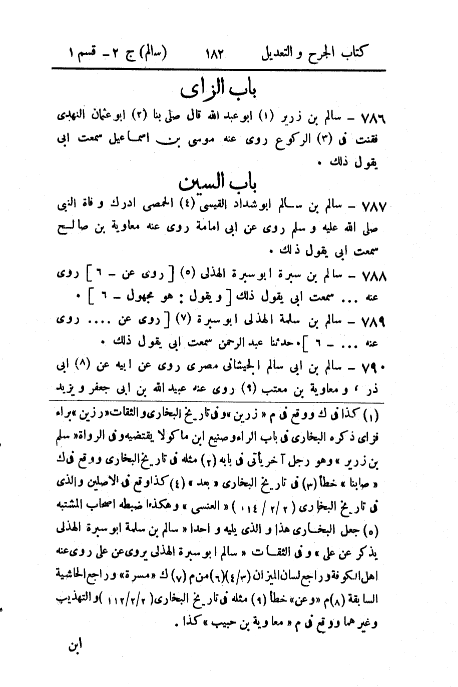 786 - سالم بن زرير (1) أبو عبد الله قال صلى بنا (2) أبو عثمان النهدي فقنت في (3) الركوع روى عنه موسى بن إسماعيل سمعت ابى يقول ذلك.