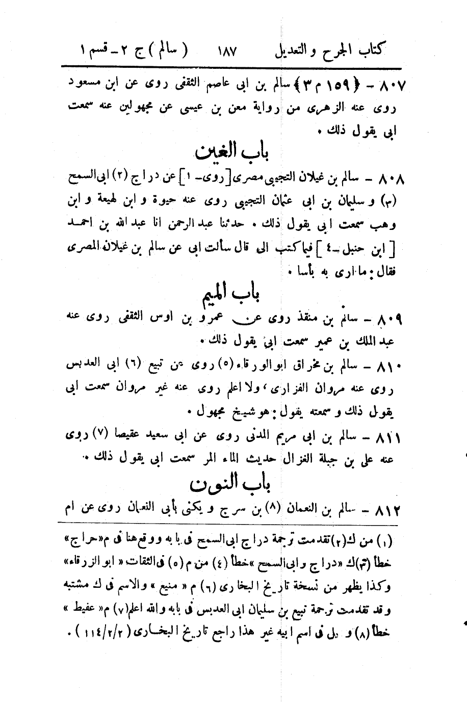 808 - سالم بن غيلان التجيبي مصري [روى - 1] عن دراج (2) أبي السمح (3) وسليمان بن أبي عثمان التجيبي روى عنه حيوة وابن لهيعة وابن وهب سمعت أبي يقول ذلك.