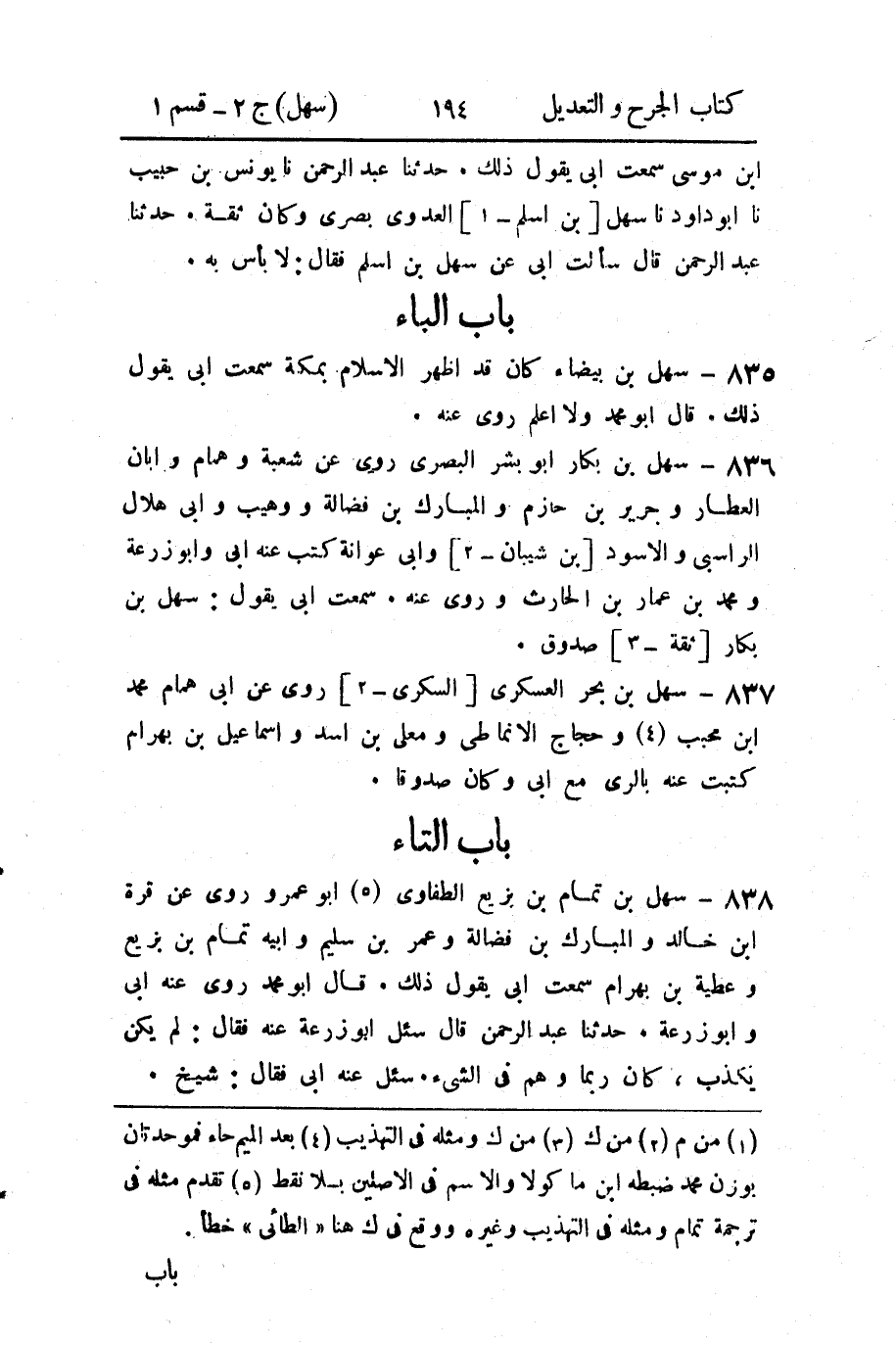 838 - سهل بن تمام بن بزيع الطفاوي (5) أبو عمرو عن قرة ابن خالد والمبارك بن فضالة وعمر بن سليم وأبيه تمام بن بزيع وعطية بن بهرام سمعت أبي يقول ذلك.
