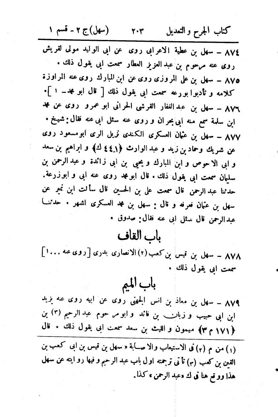 (1) من م (2) في الاستيعاب والاصابة " سهل بن قيس بن ابى كعب بن القين بن كعب (3) تأتى ترجمته اول باب عبد الرحيم وفيها روايته عن سهل هذا ووقع هنا في ك " عبد الرحمن " كذا.