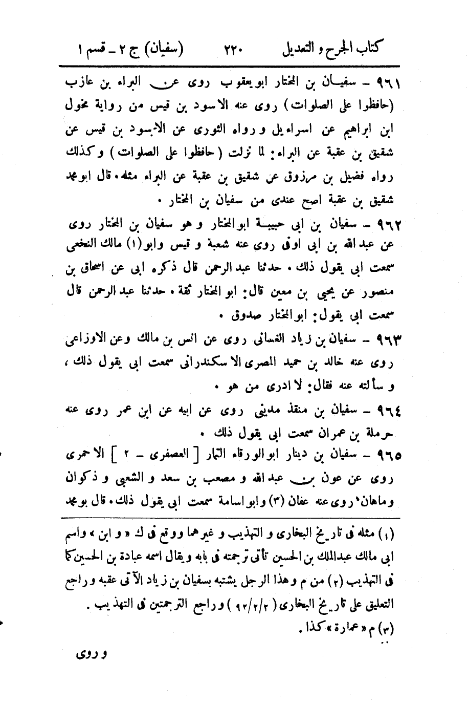 965 - سفيان بن دينار أبو الورقاء التمار [العصفري - 2] الأحمري روى عن عون بن عبد الله ومصعب بن سعد والشعبي وذكوان وماهان روى عنه عفان (3) وأبو أسامة سمعت أبي يقول ذلك.