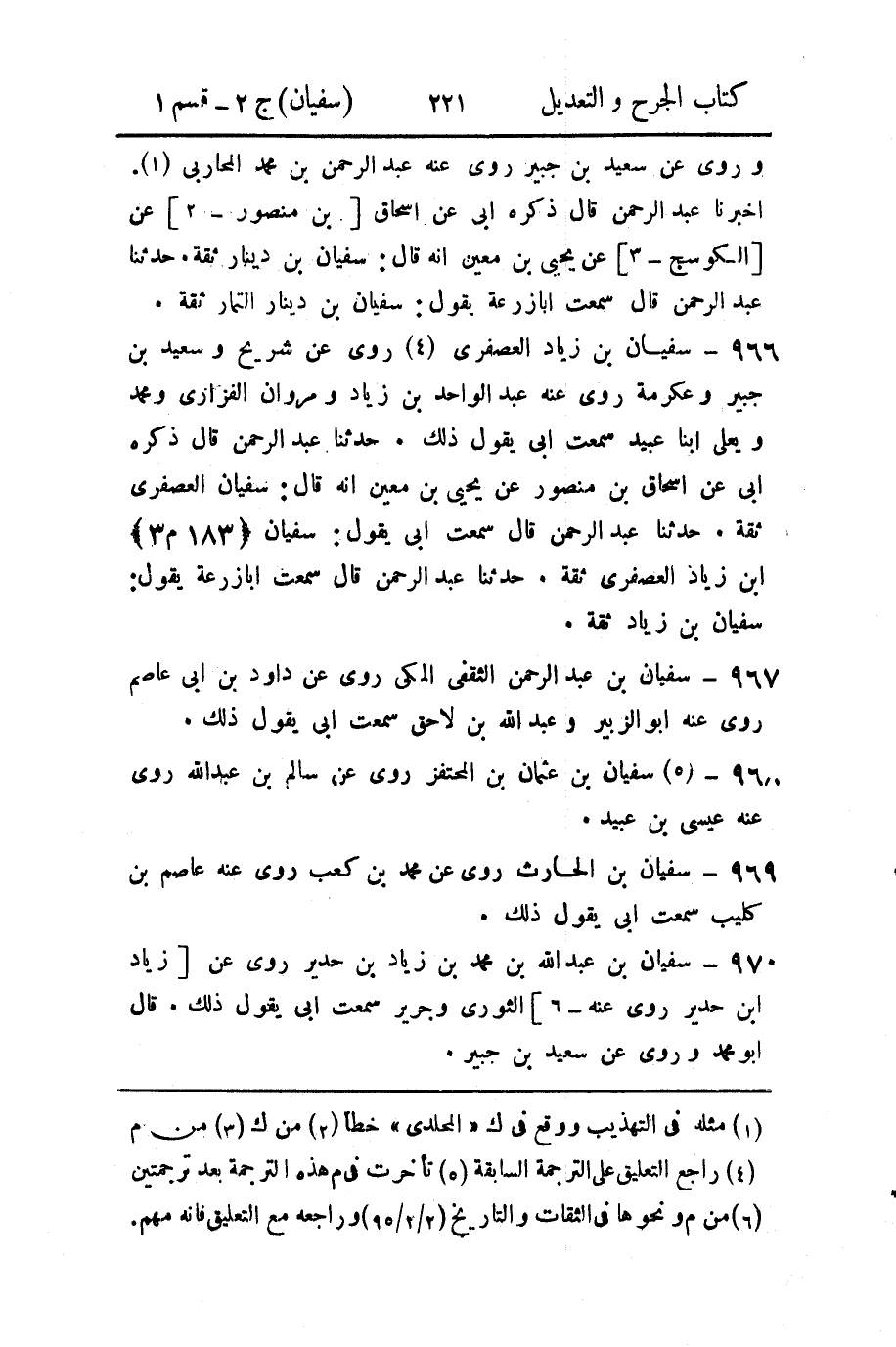 966 - سفيان بن زياد العصفري (4) روى عن شريح وسعيد بن جبير وعكرمة روى عنه عبد الواحد بن زياد ومروان الفزاري ومحمد ويعلى ابنا عبيد سمعت أبي يقول ذلك.