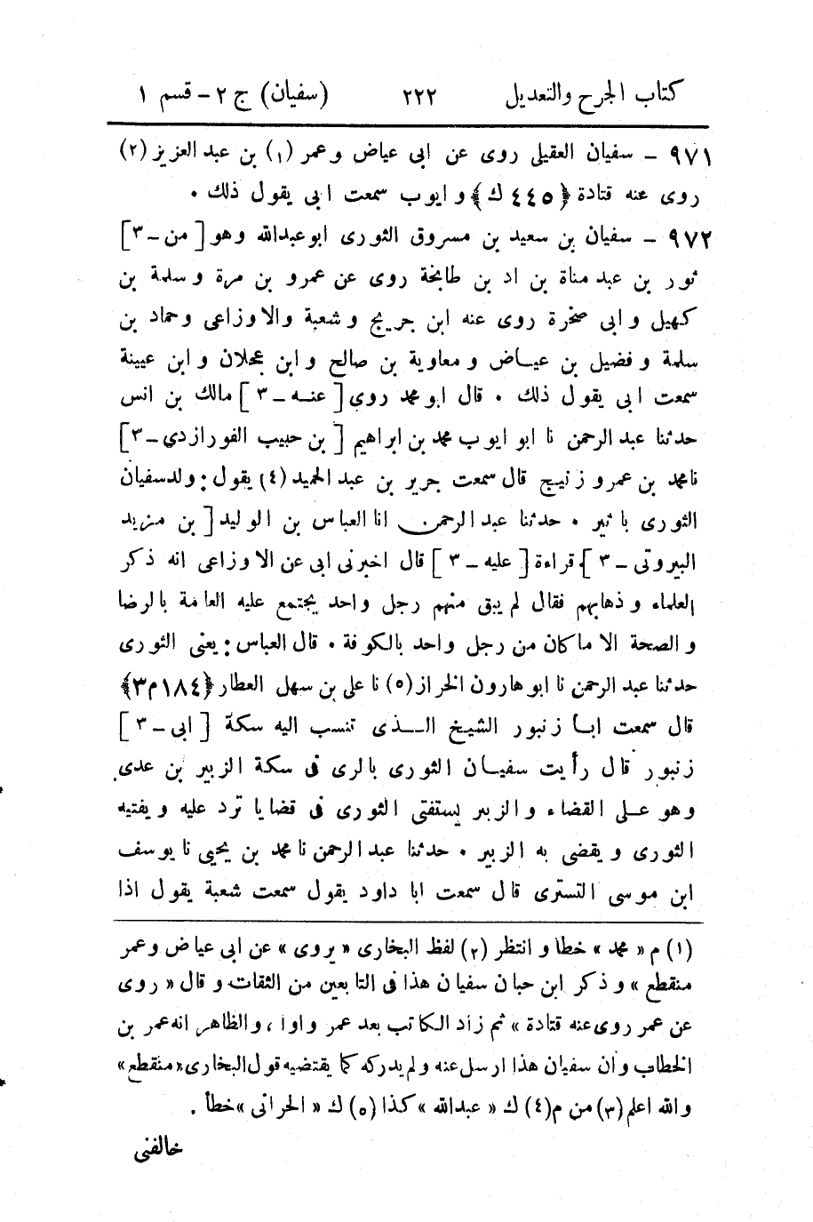 (1) م " محمد " خطأ وانتظر (2) لفظ البخاري " يروى " عن ابن عياض وعمر منقطع " وذكر ابن حبان سفيان هذا في التابعين من الثقات وقال " روى عن عمر روى عنه قتادة " ثم زاد الكاتب بعد عمر واوا، والظاهر انه عمر بن الخطاب وان سفيان هذا ارسل عنه ولم يدركه كما يقتضيه قول البخاري " منقطع " والله اعلم (3) من م (4) ك " عبد الله " كذا (5) ك " الحرانى " خطأ.